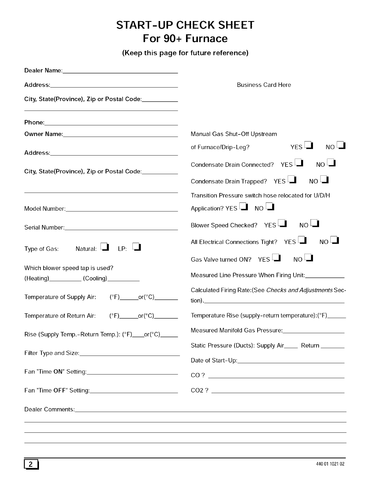Code (NSCNGPIC) CSA B149.1-05. Wear safety glasses and work gloves. Have fire extinguisher available during start-up and adjustment