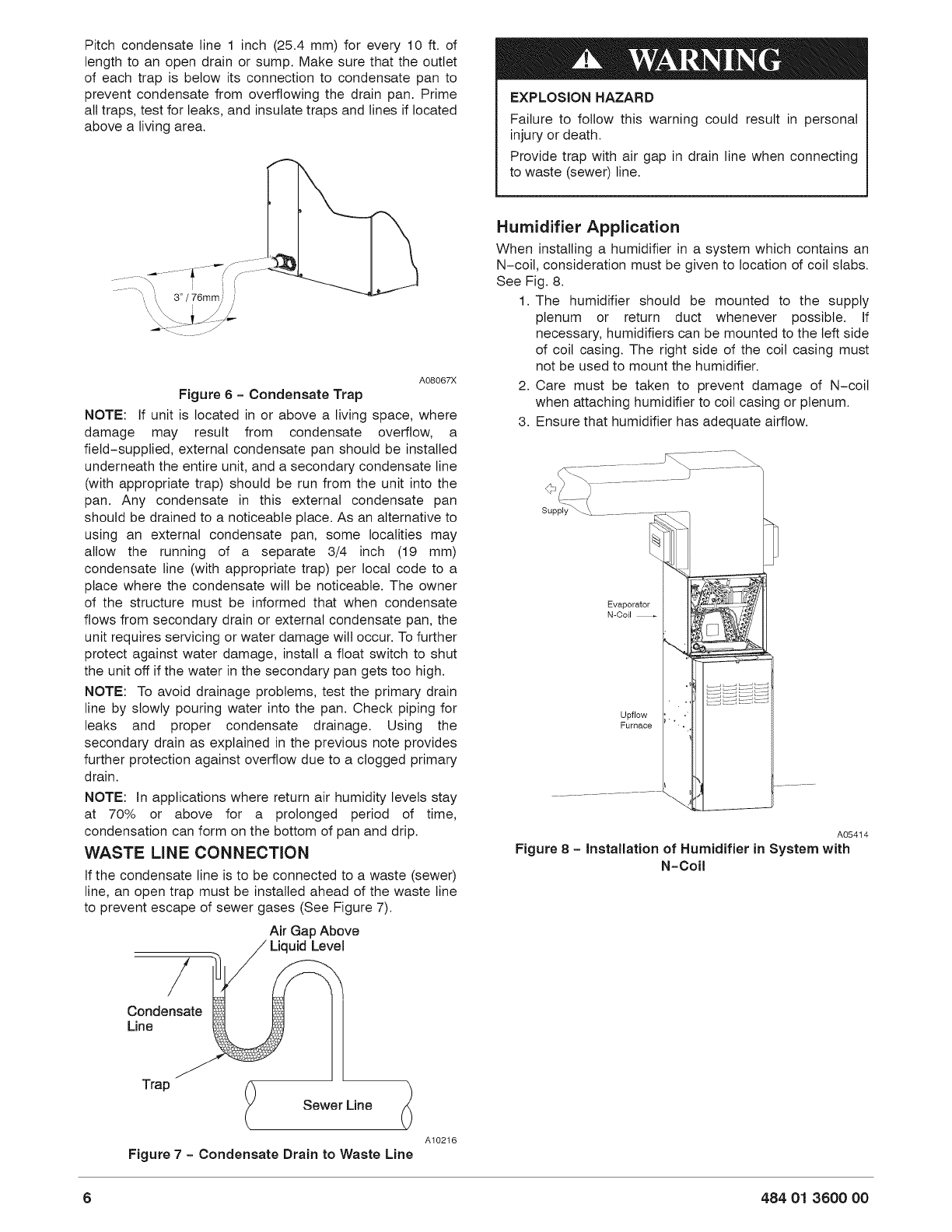 line, an open trap must be installed ahead of the waste line