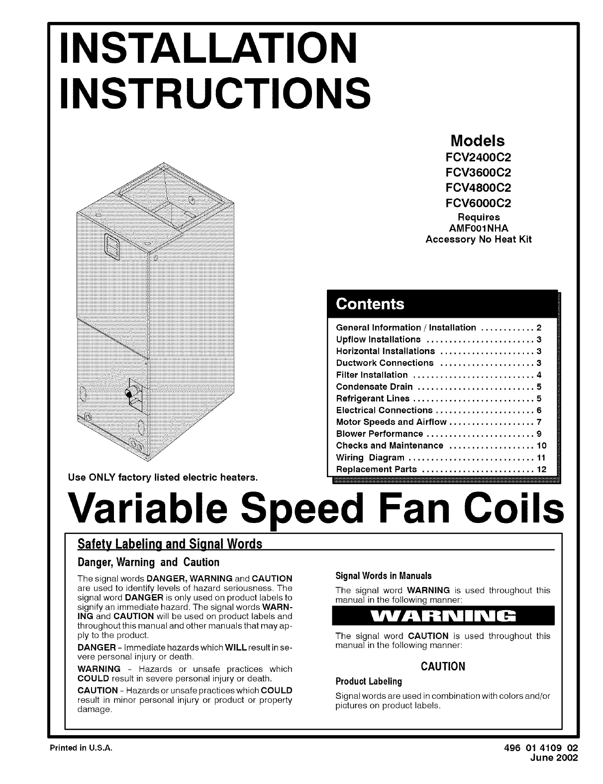 ICP Air Handler (indoor Blower&evap) Manual L0502498