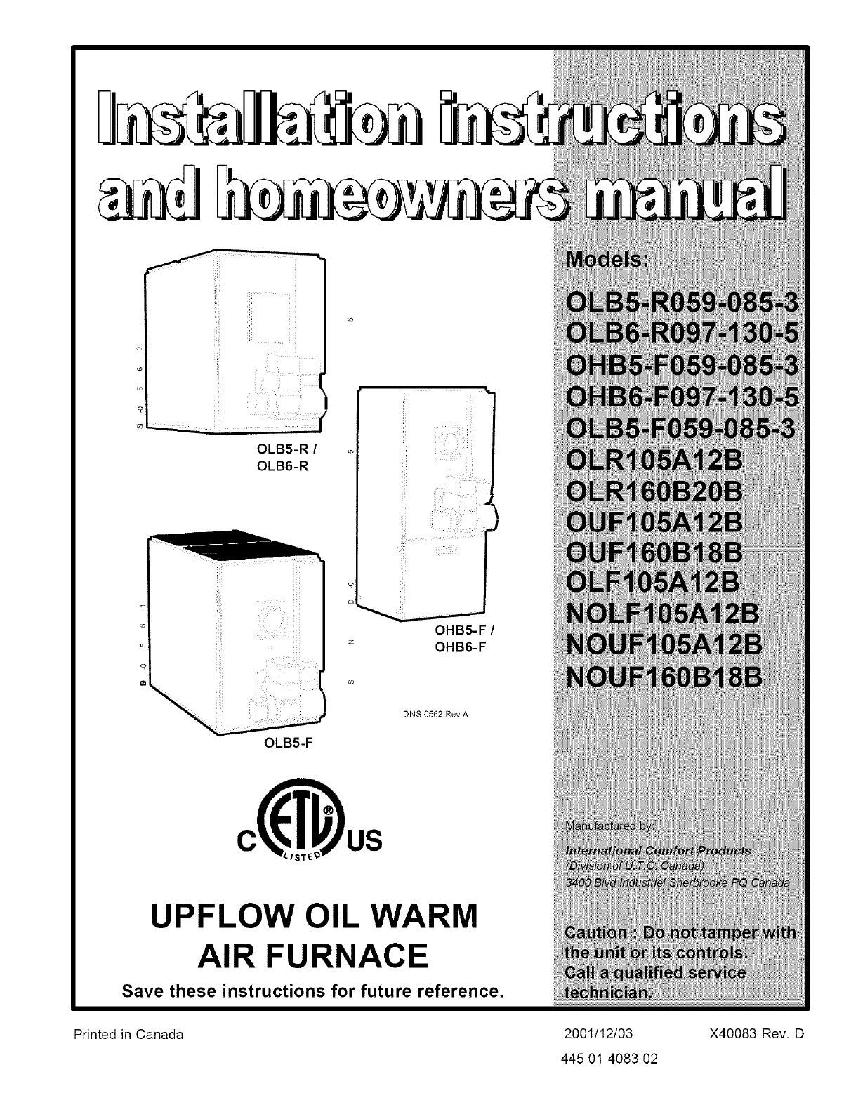 ICP Furnace/Heater, Oil Manual L0502542