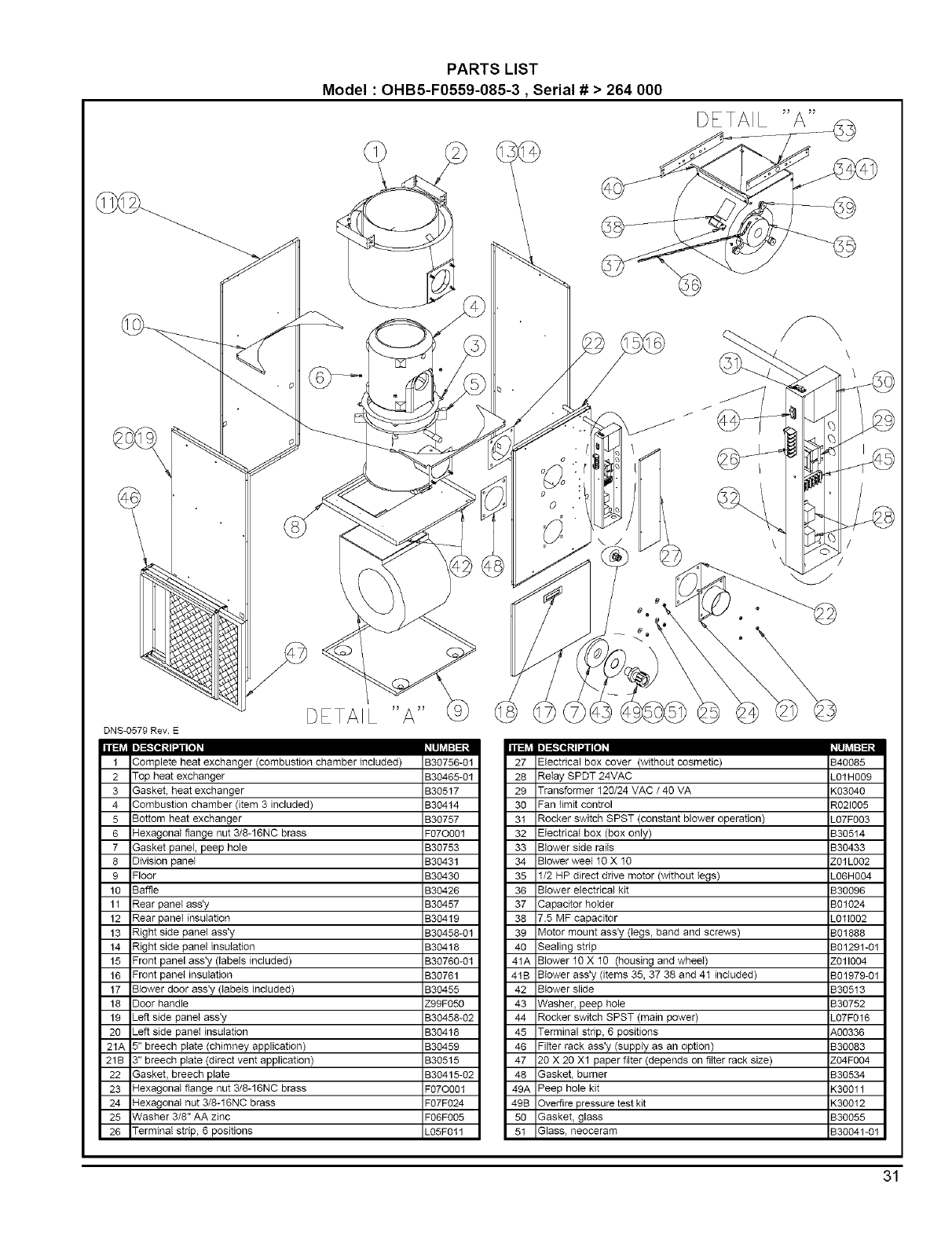 1 Echan_eur de chaleur complet/chambre a combustion incluse / B30756-01