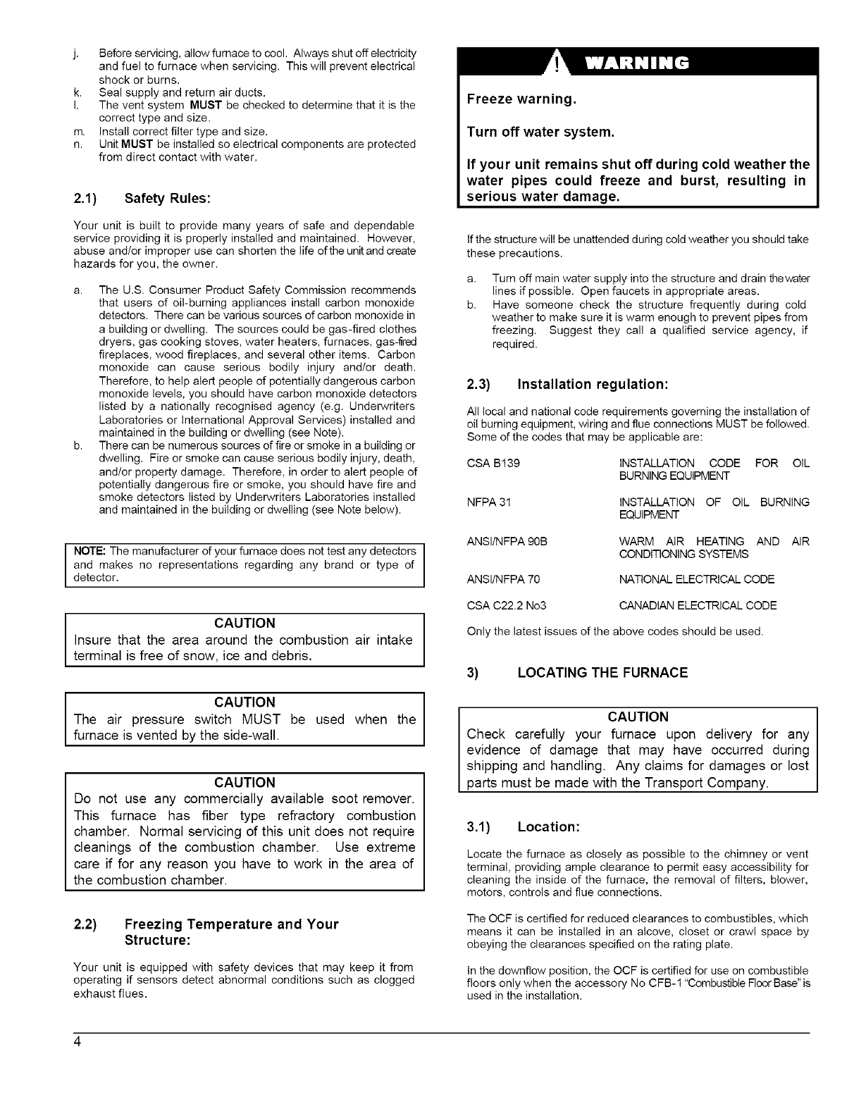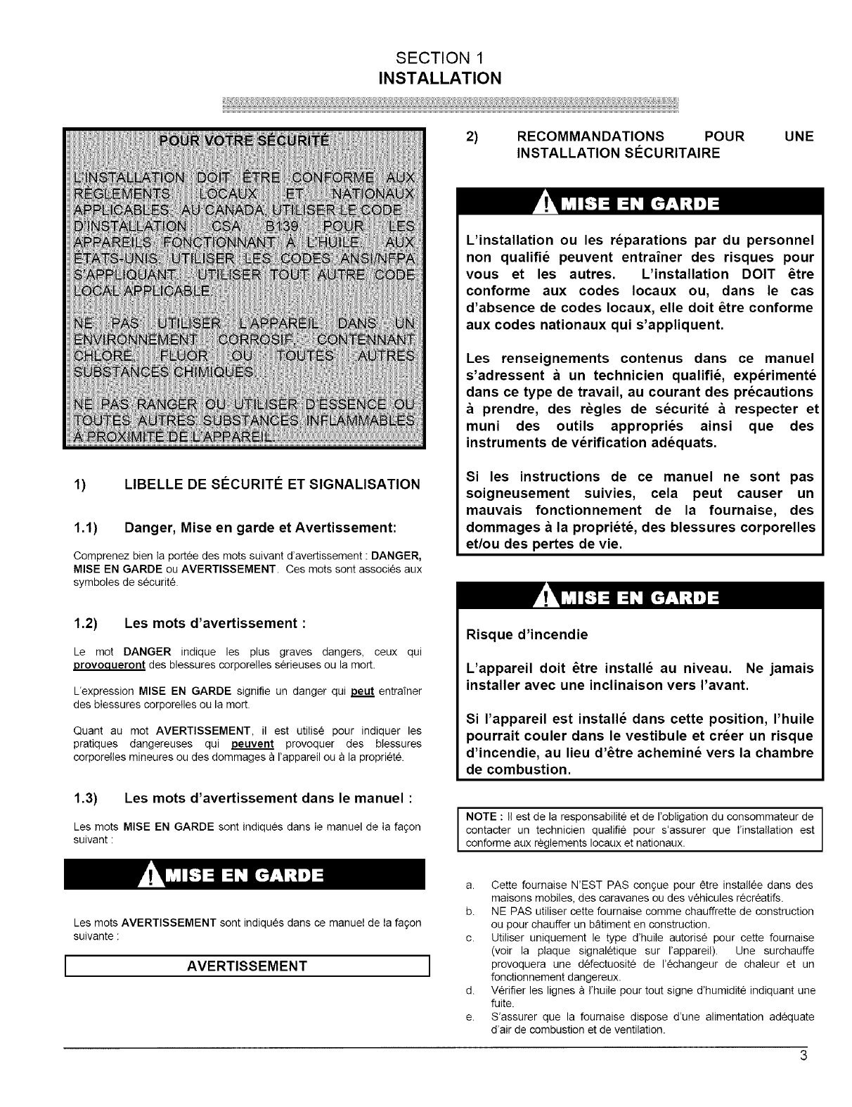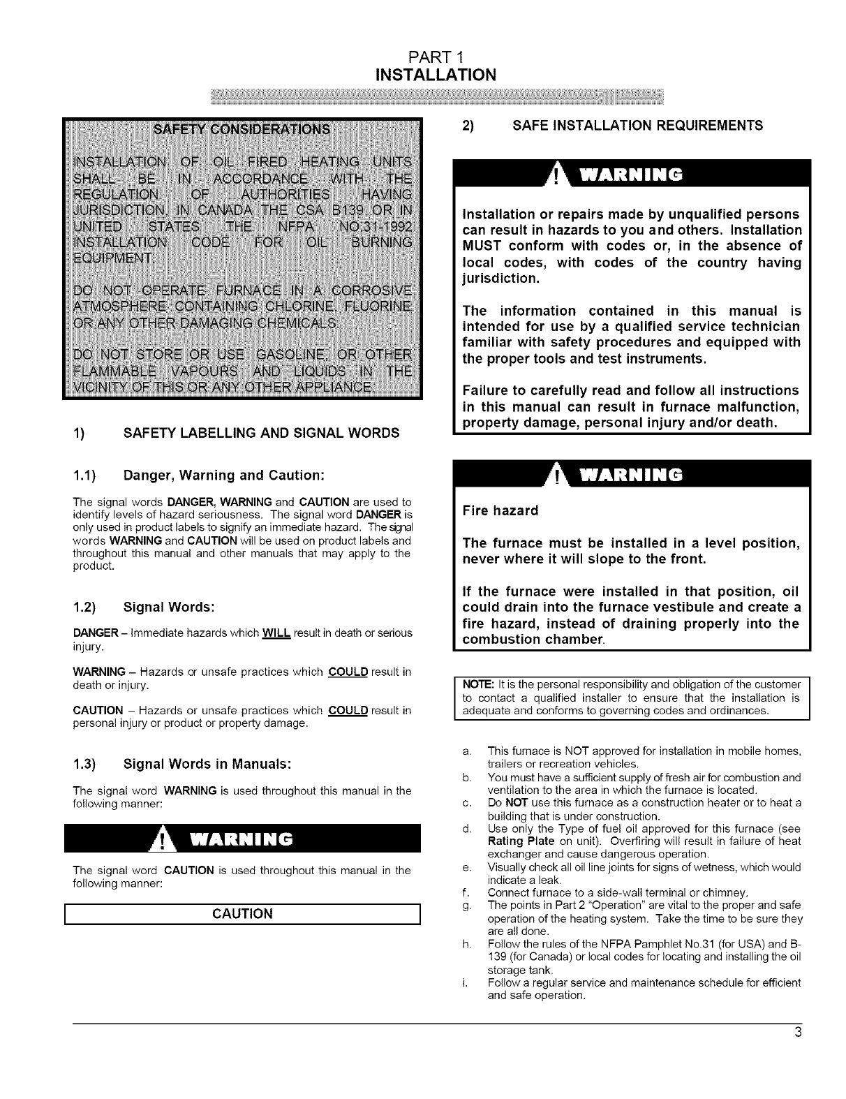 139 (for Canada) or local codes for locating and installing the oil