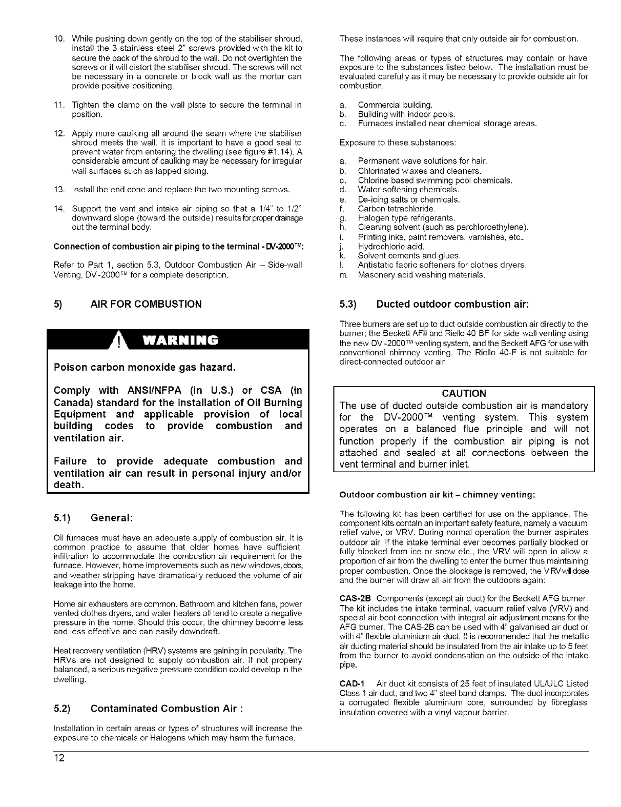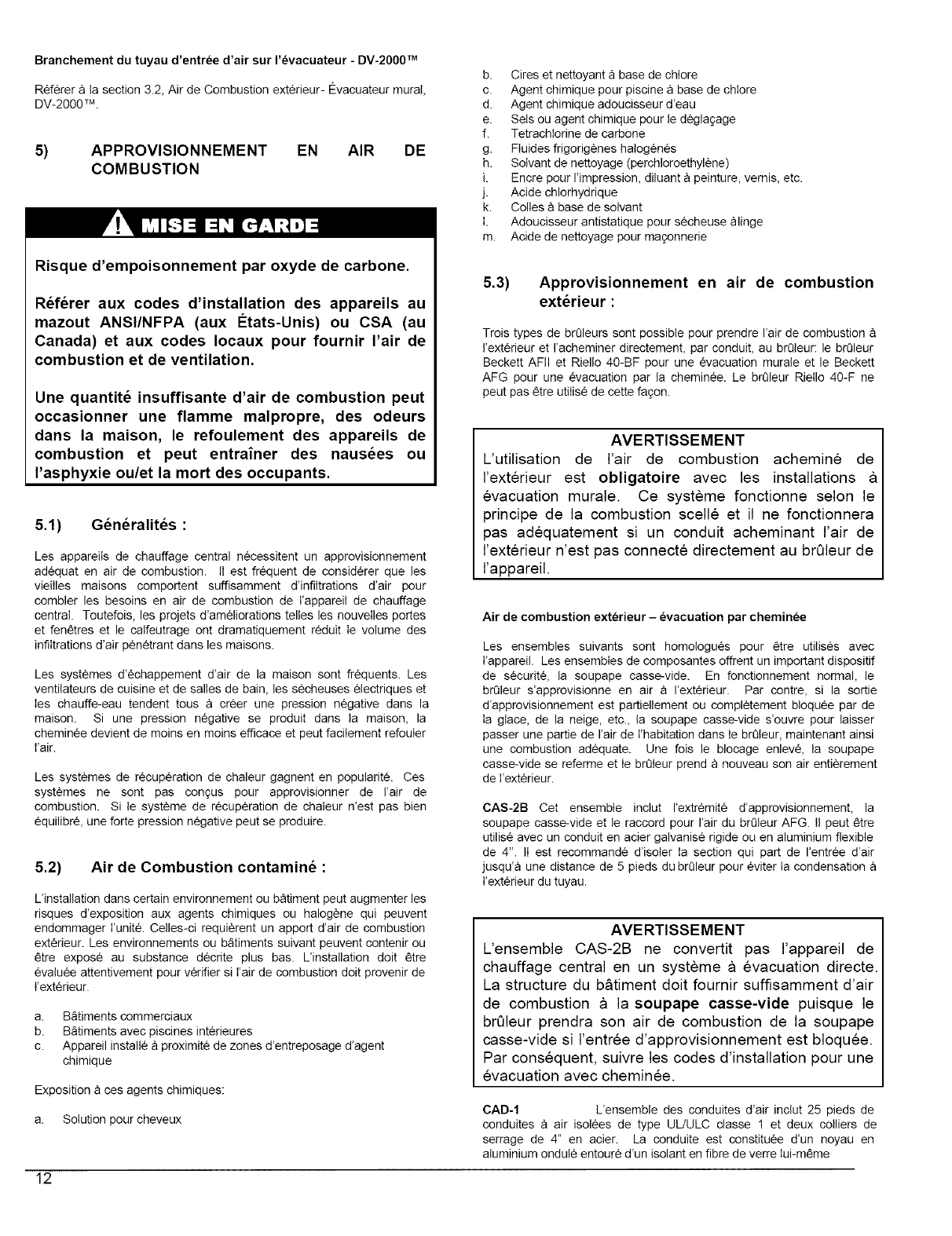 b. You must have a sufficient supply of fresh air for combustion and