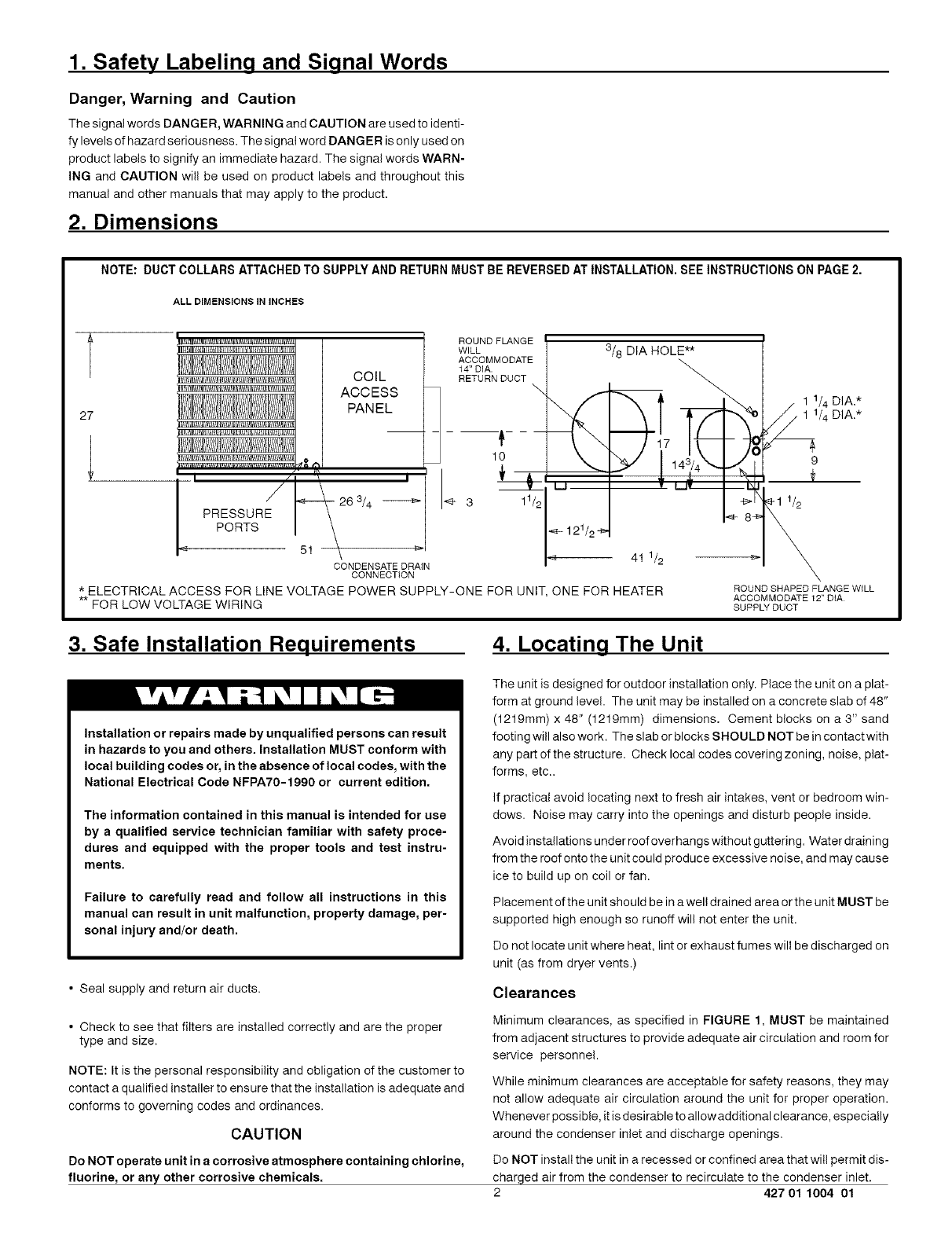 NOTE: DUCT COLLARS ATTACHED TO SUPPLY AND RETURN MUST BE REVERSED AT INSTALLATION. SEE INSTRUCTIONS ON PAGE 2.