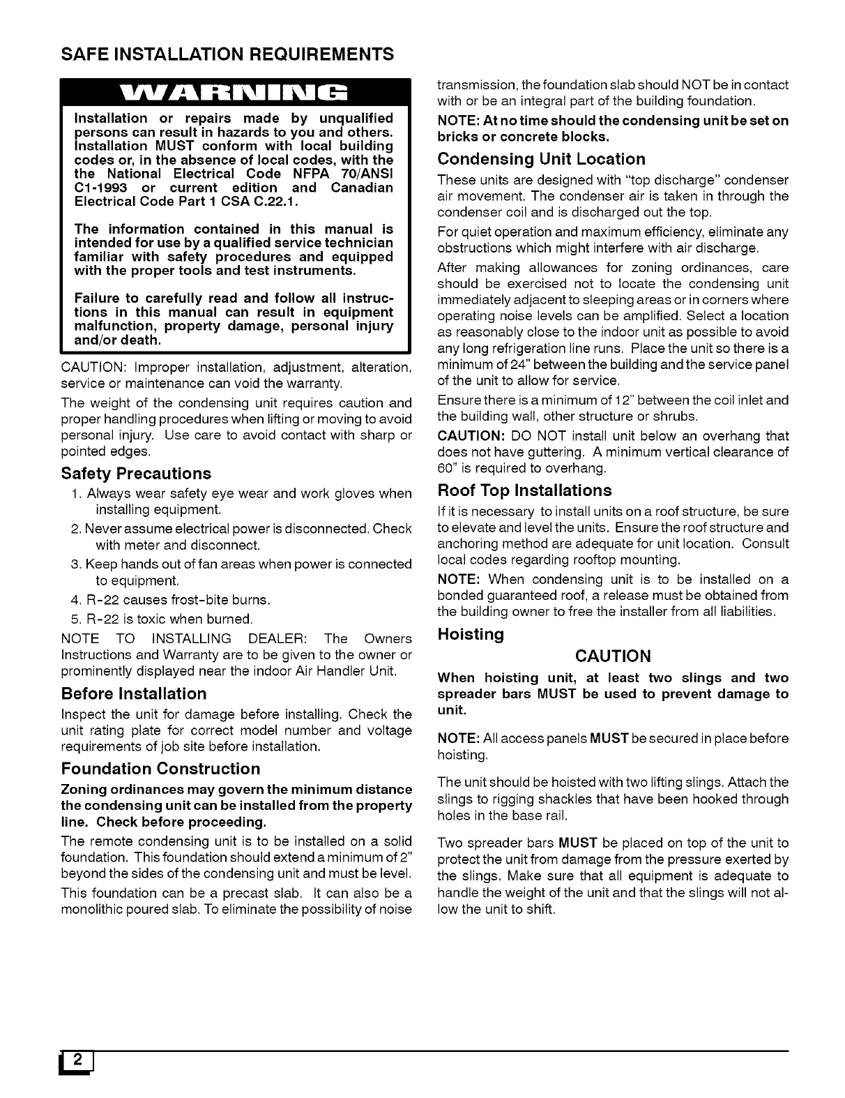 2) All Other Models: Air Conditioners. Heat PumPs. &Combination Gas/Electric Units: NAC0. NAC2. NHP0. NHP2. AO. A2. HO. H2. PGF.