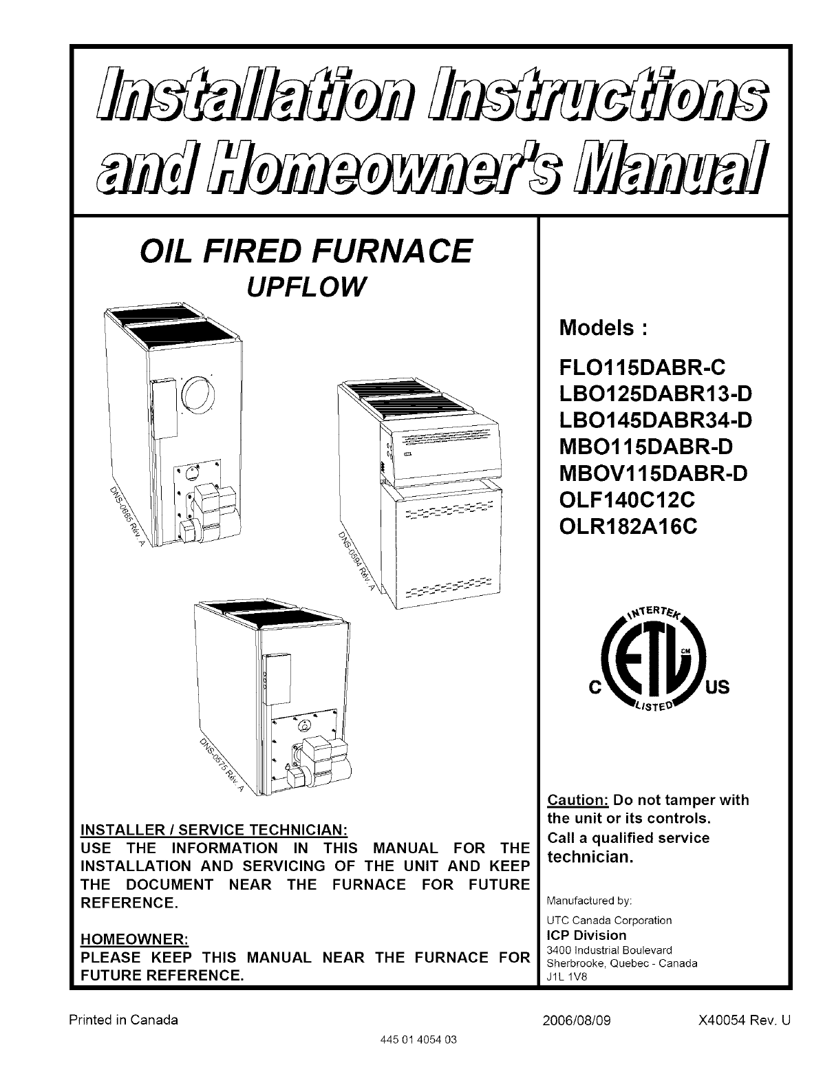 2006/08/09 X40054 Rev. U