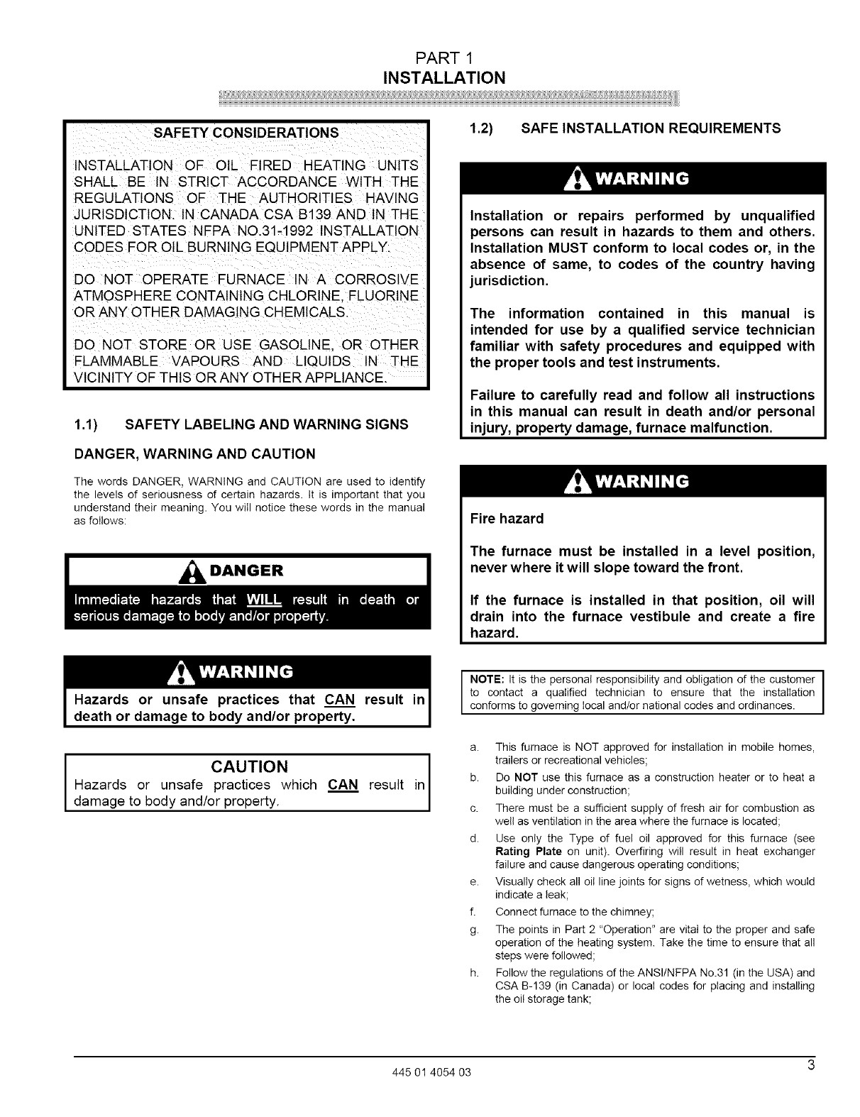 1.2) SAFE INSTALLATION REQUIREMENTS
