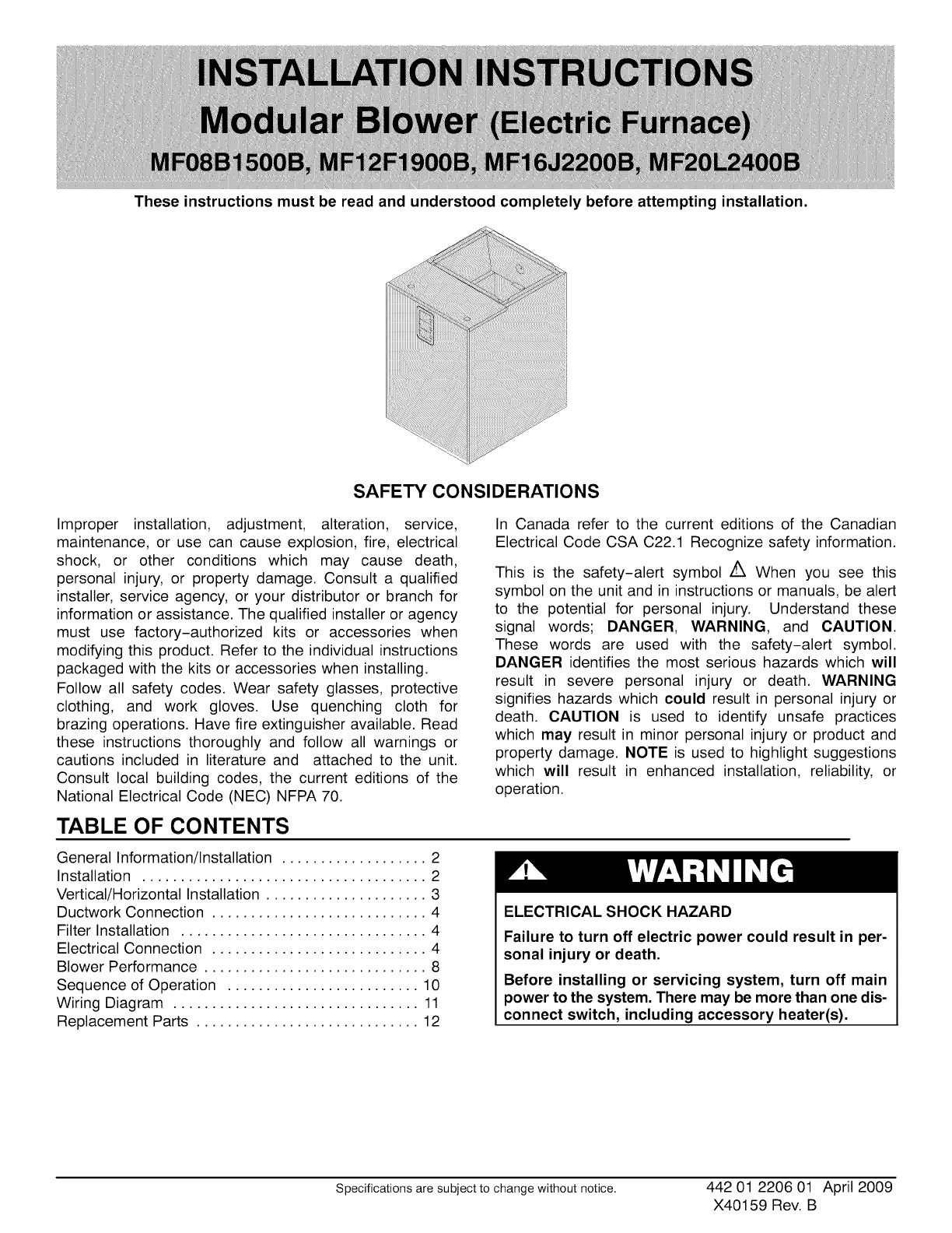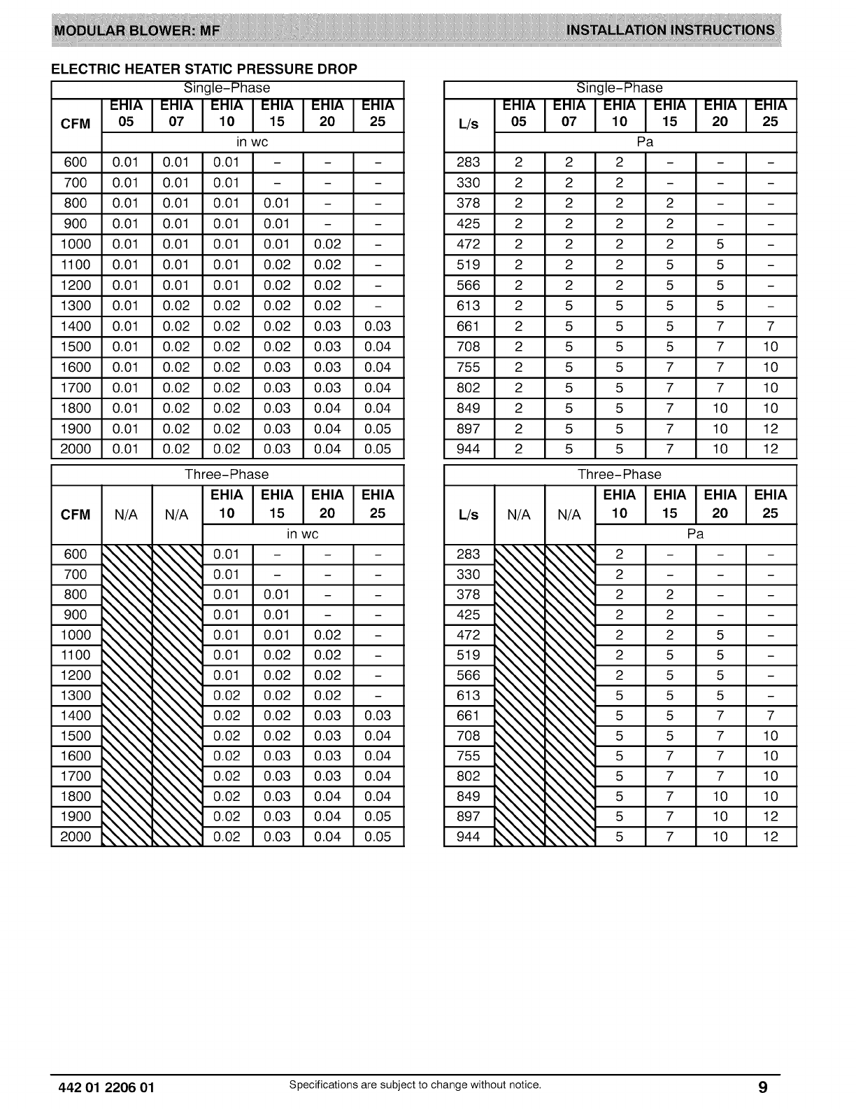 Specifications are subject to change without notice. 442 01 2206 01 April 2009