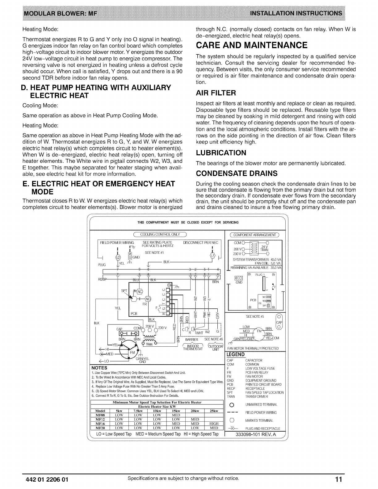442 01 2206 01 Specifications are subject to change without notice. 11