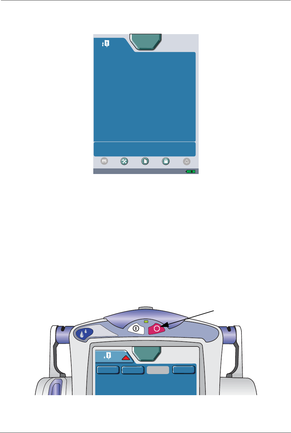 2. Press and release Emergency Stop. All active programs stop infusing and a high urgency