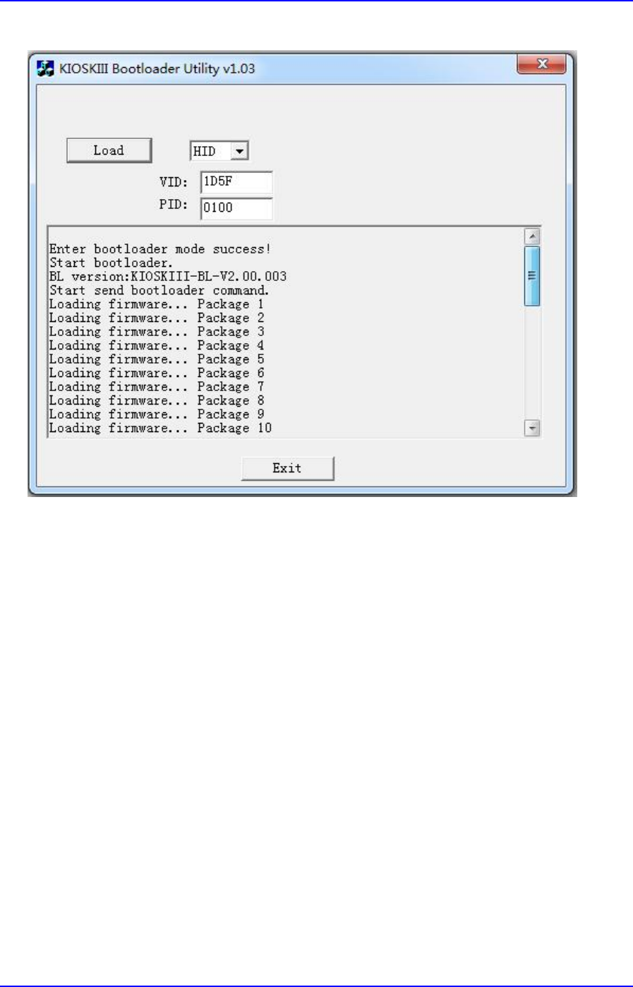 5. Click the “Load” button - the firmware will be downloaded into the device. When “Firmware