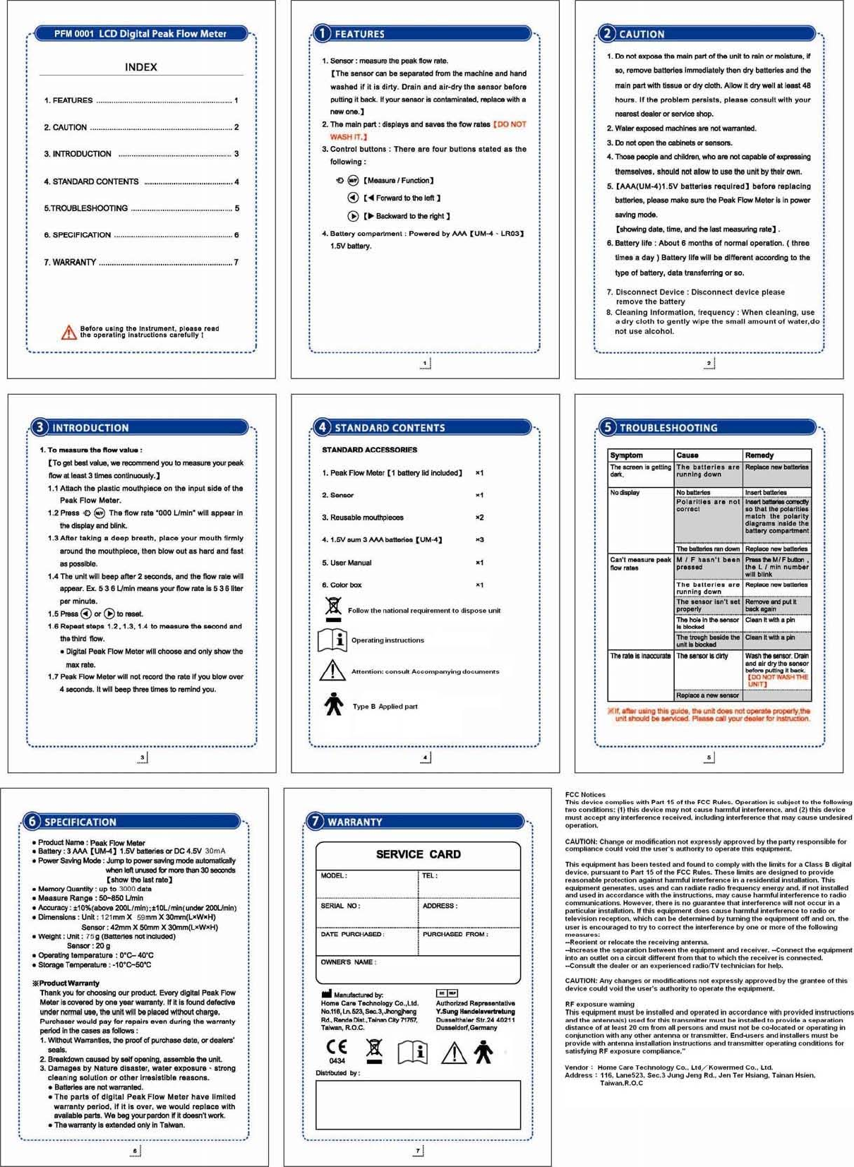 IDEAL LIFE INC. Peak Flow Meter PFM 0001