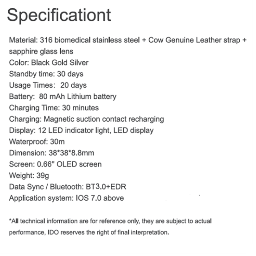 Shenzhen IDO Intelligent Technology Co. Ltd Smart bracelet