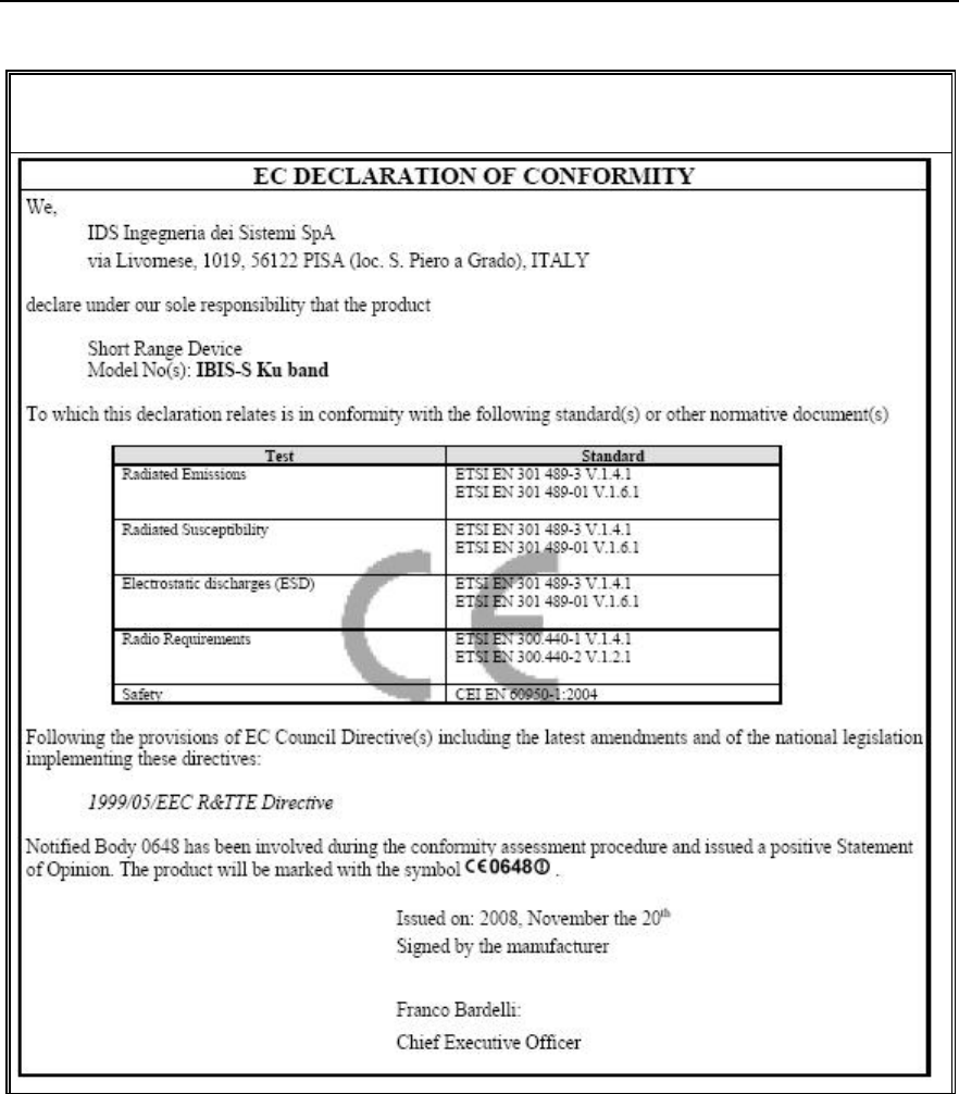 IDS will not be held responsible for the consequences of an improper use of the equipment.