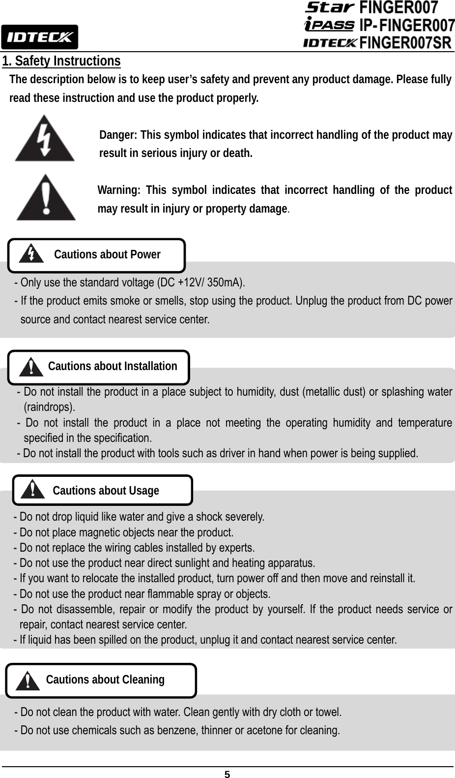 IDTECK FINGER007SR RFID & Biometrics Access Controller User Manual Appendix 4 Block Diagram