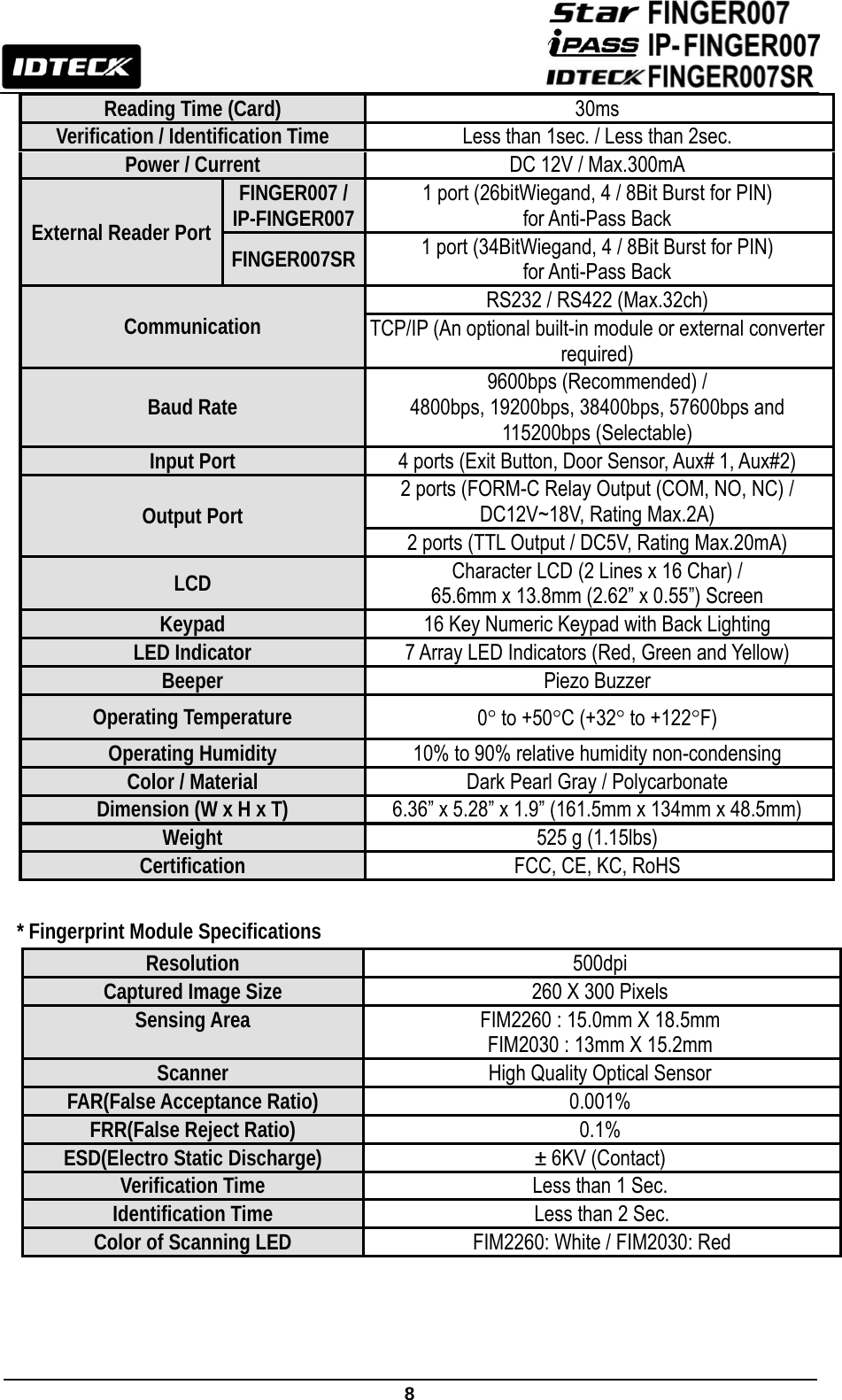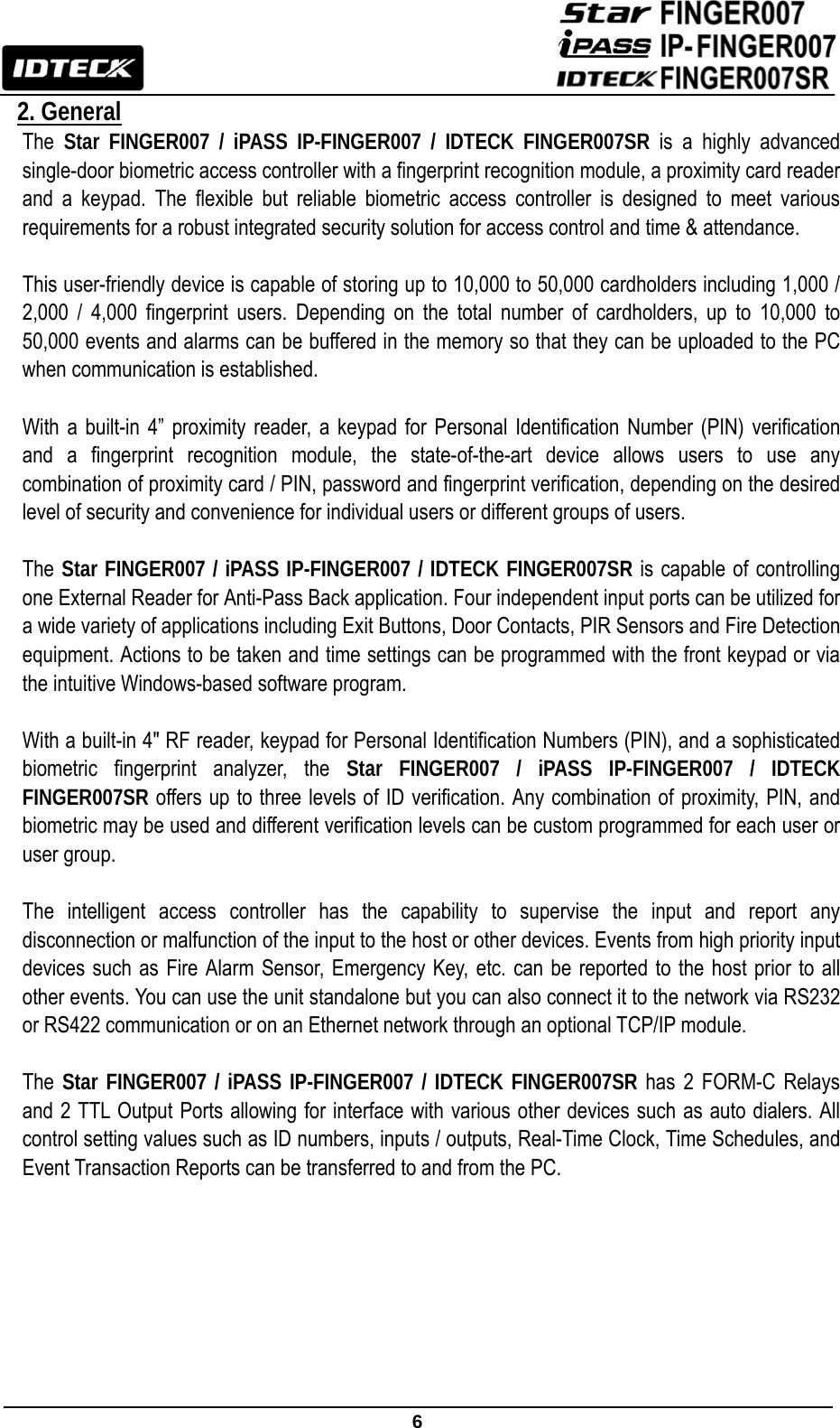ID-Teck Co Ltd RFID & Biometrics Access Controller Appendix 4 Block Diagram