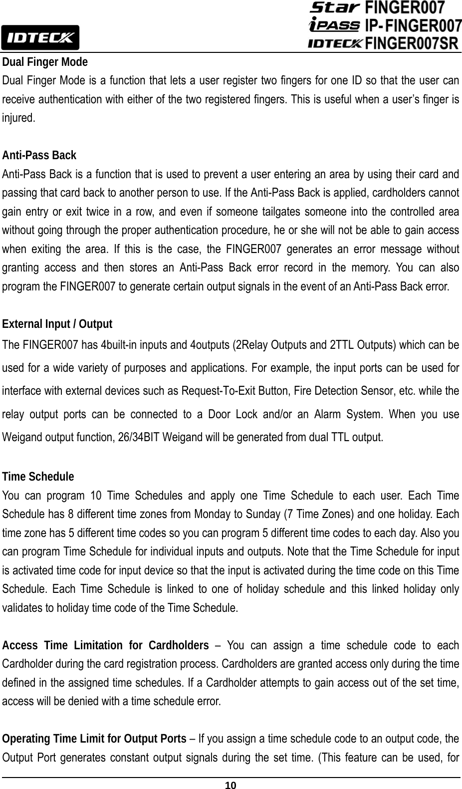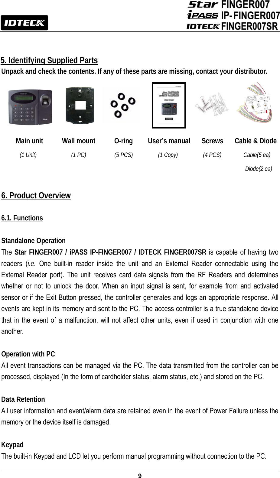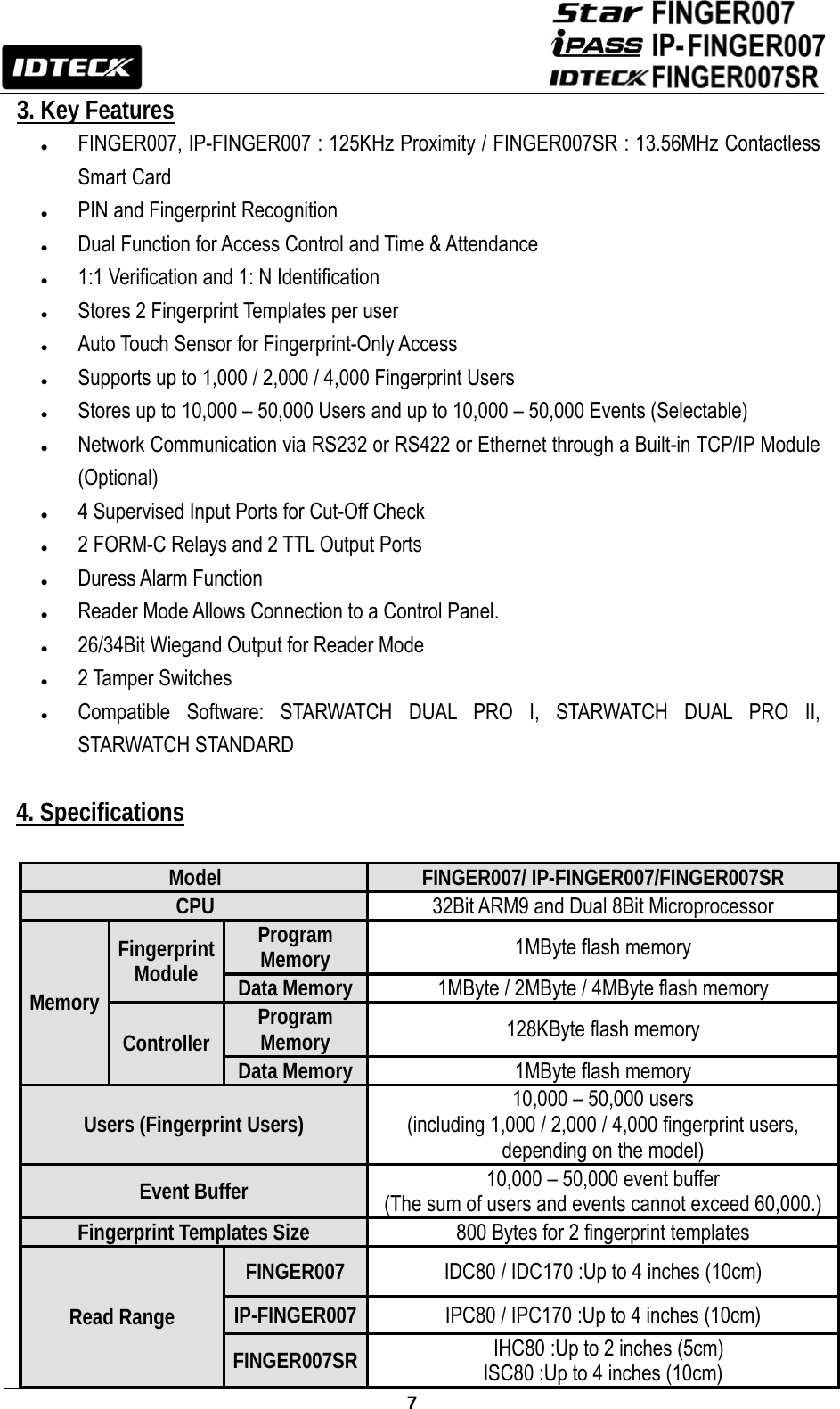 IDTECK IP-FINGER007 RFID & Biometrics Access Controller User Manual Appendix 4 Block Diagram