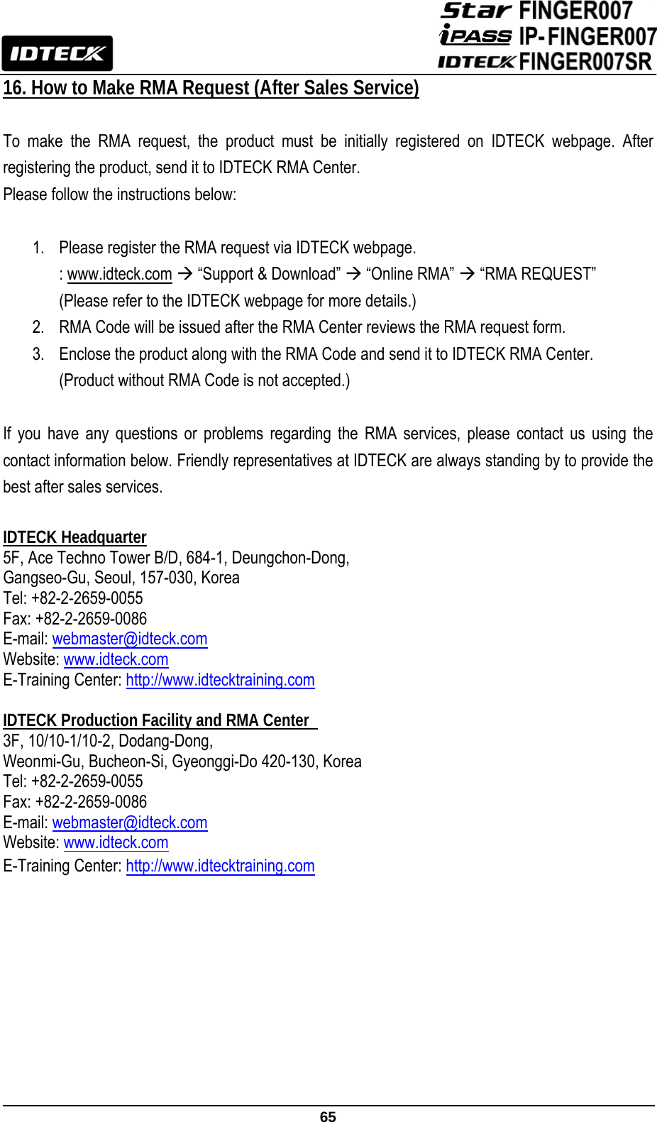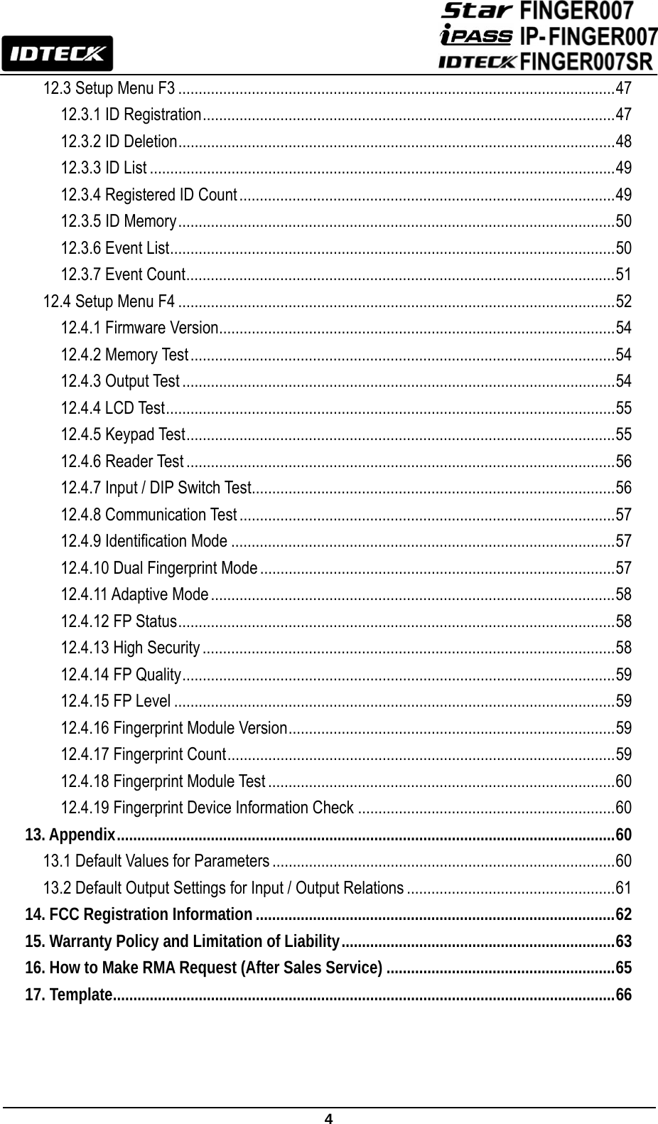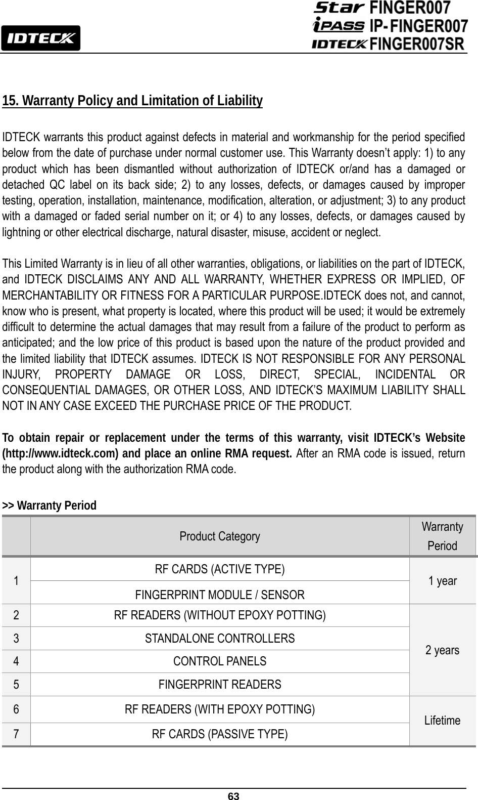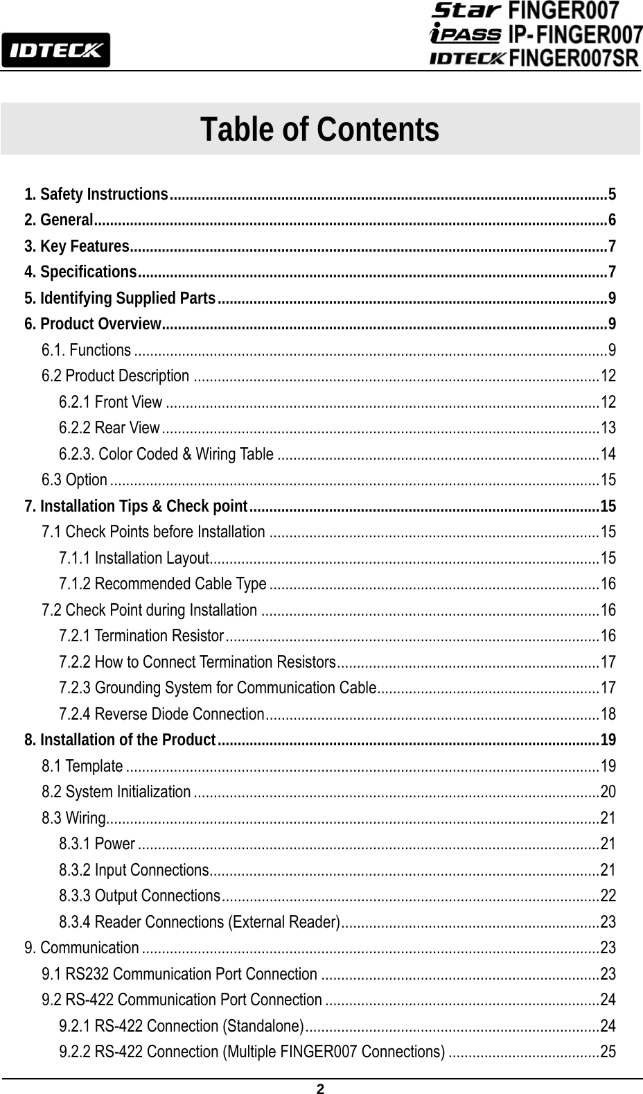 IDTECK IP-FINGER007 RFID & Biometrics Access Controller User Manual Appendix 4 Block Diagram