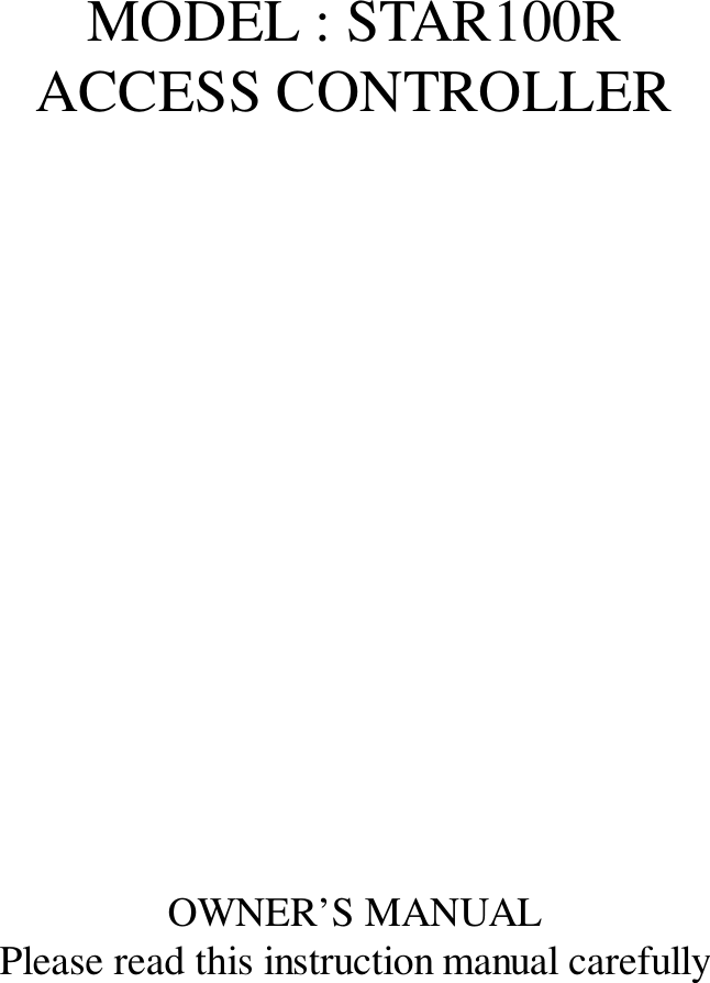 IDTECK STAR100R Door Access Controller User Manual Manual