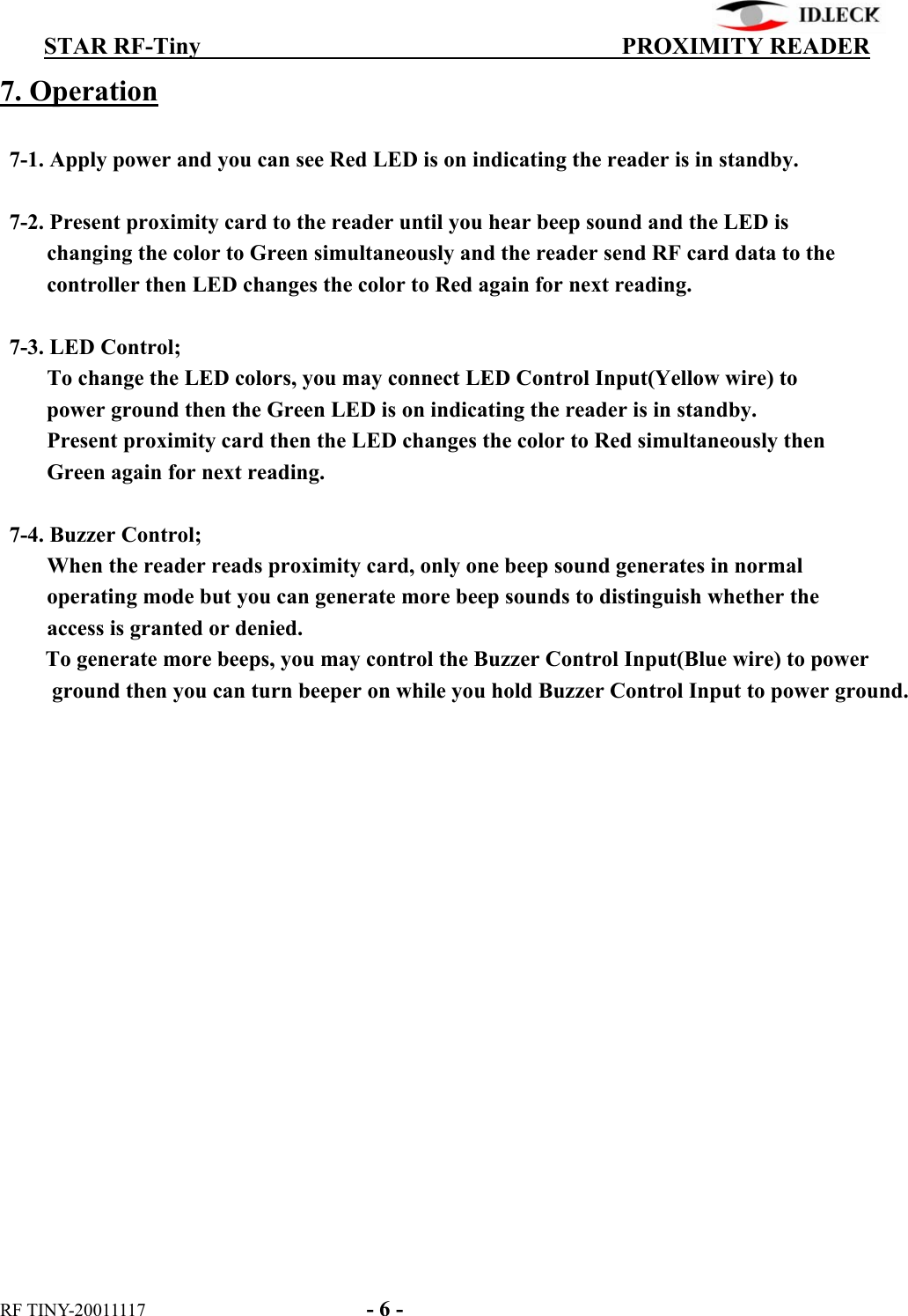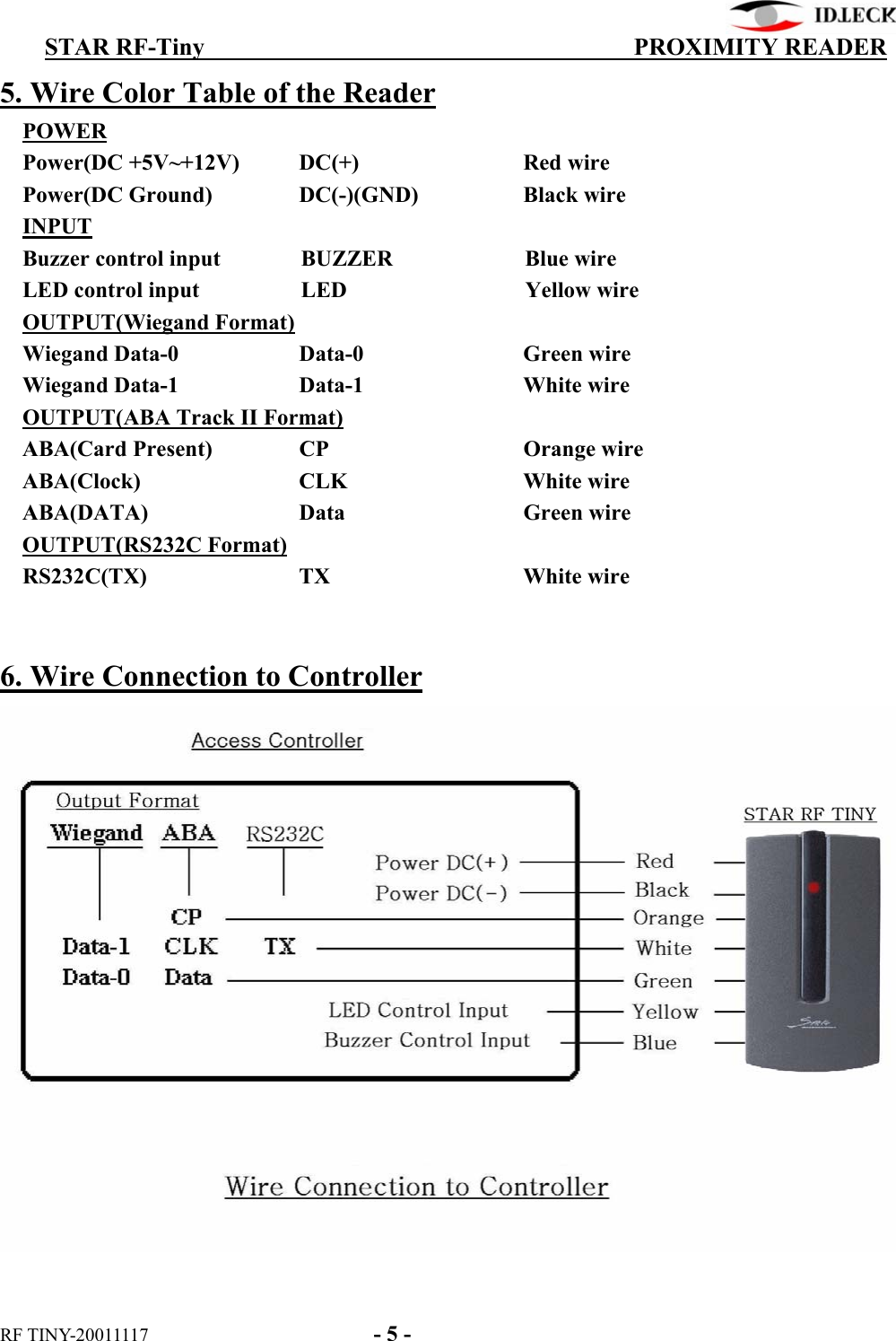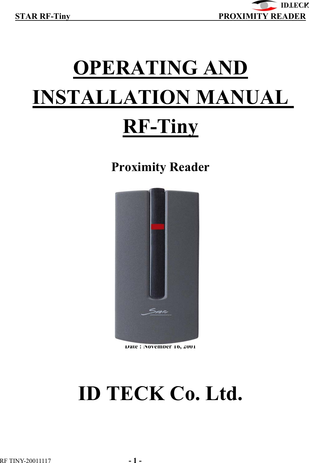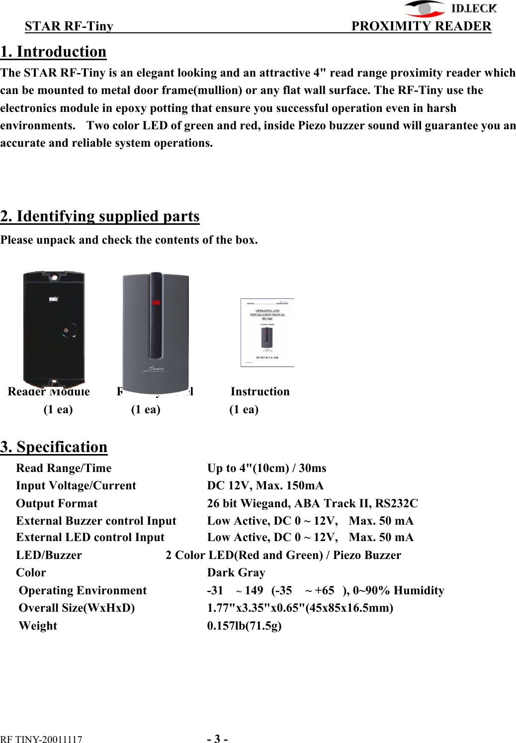IDTECK STARRF-TINY Proximity Reader ( RF-Tiny) User Manual 285773