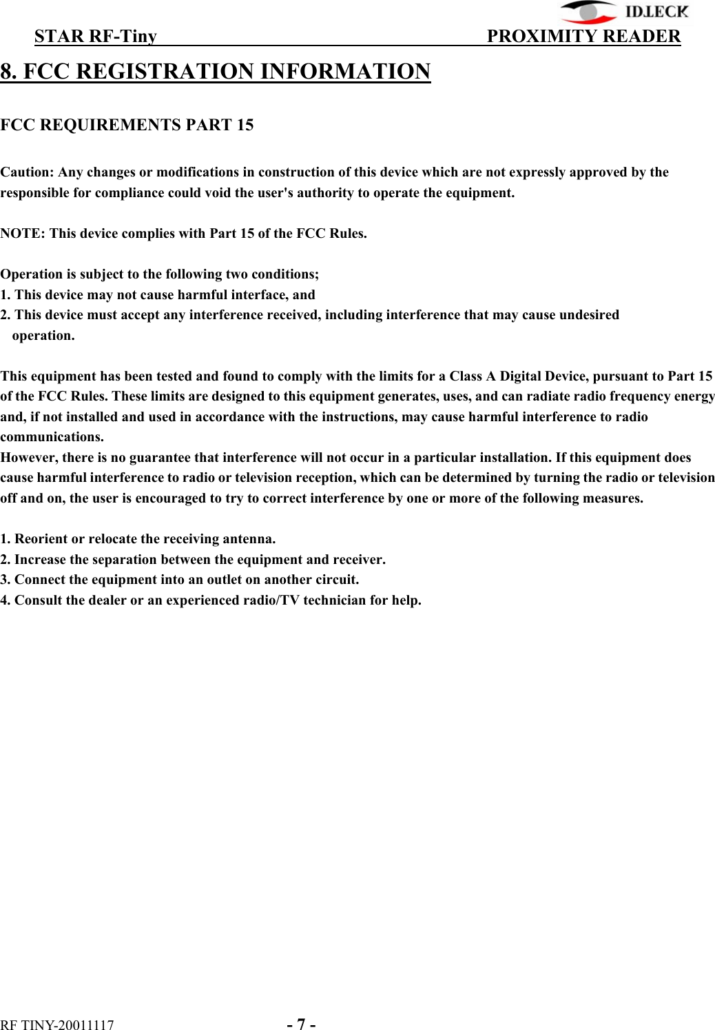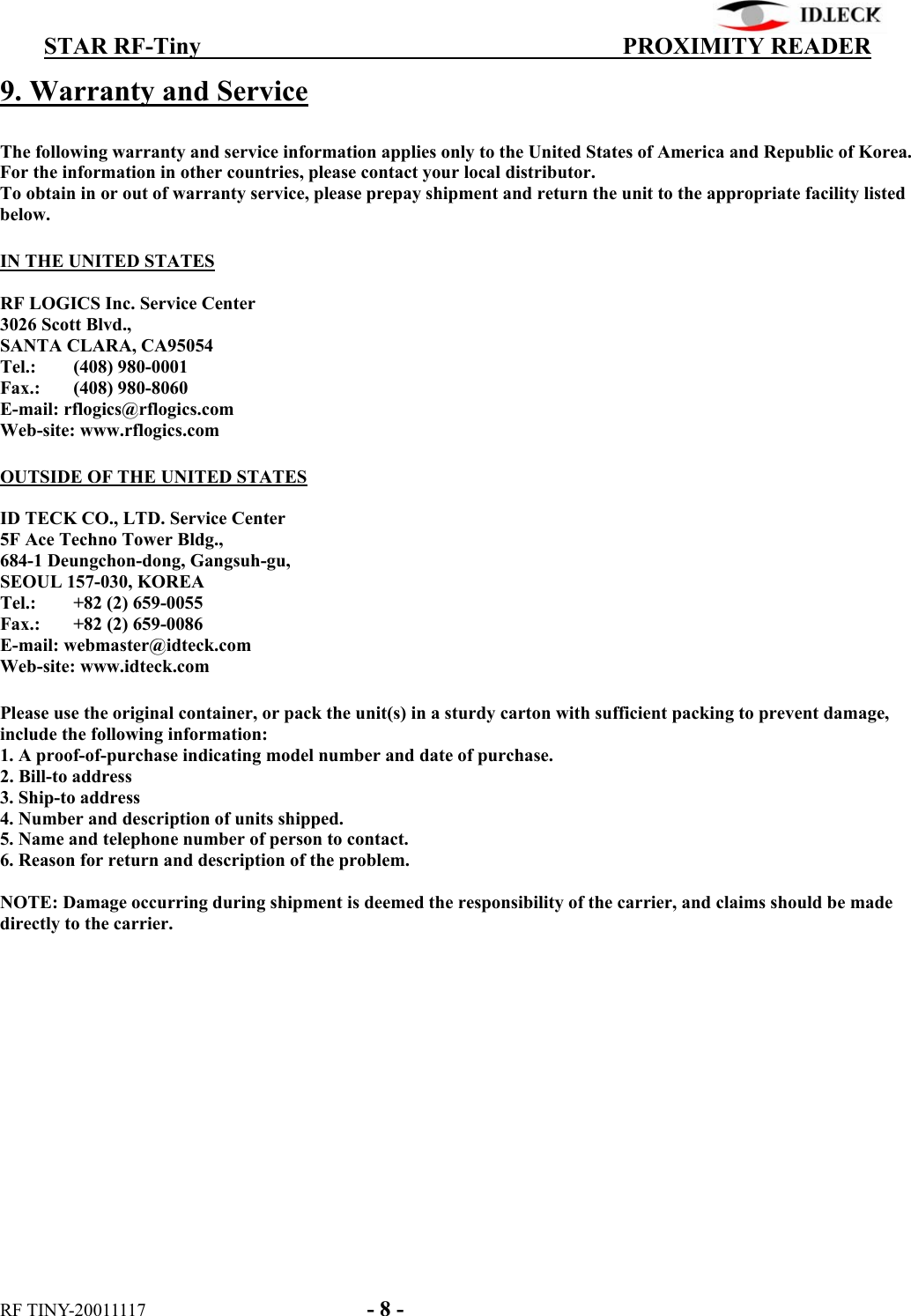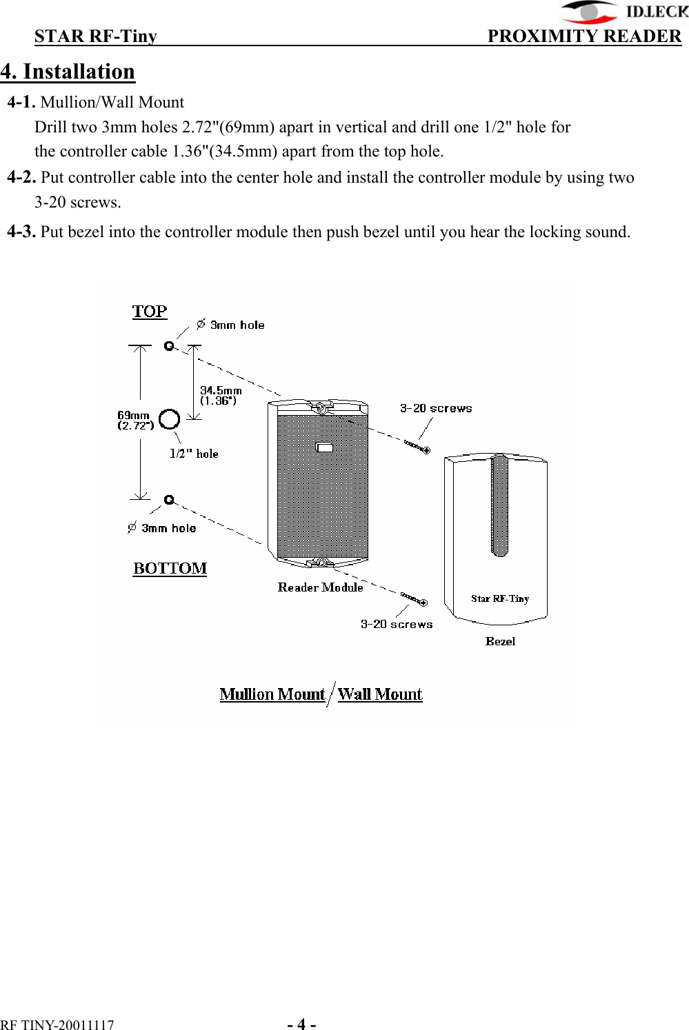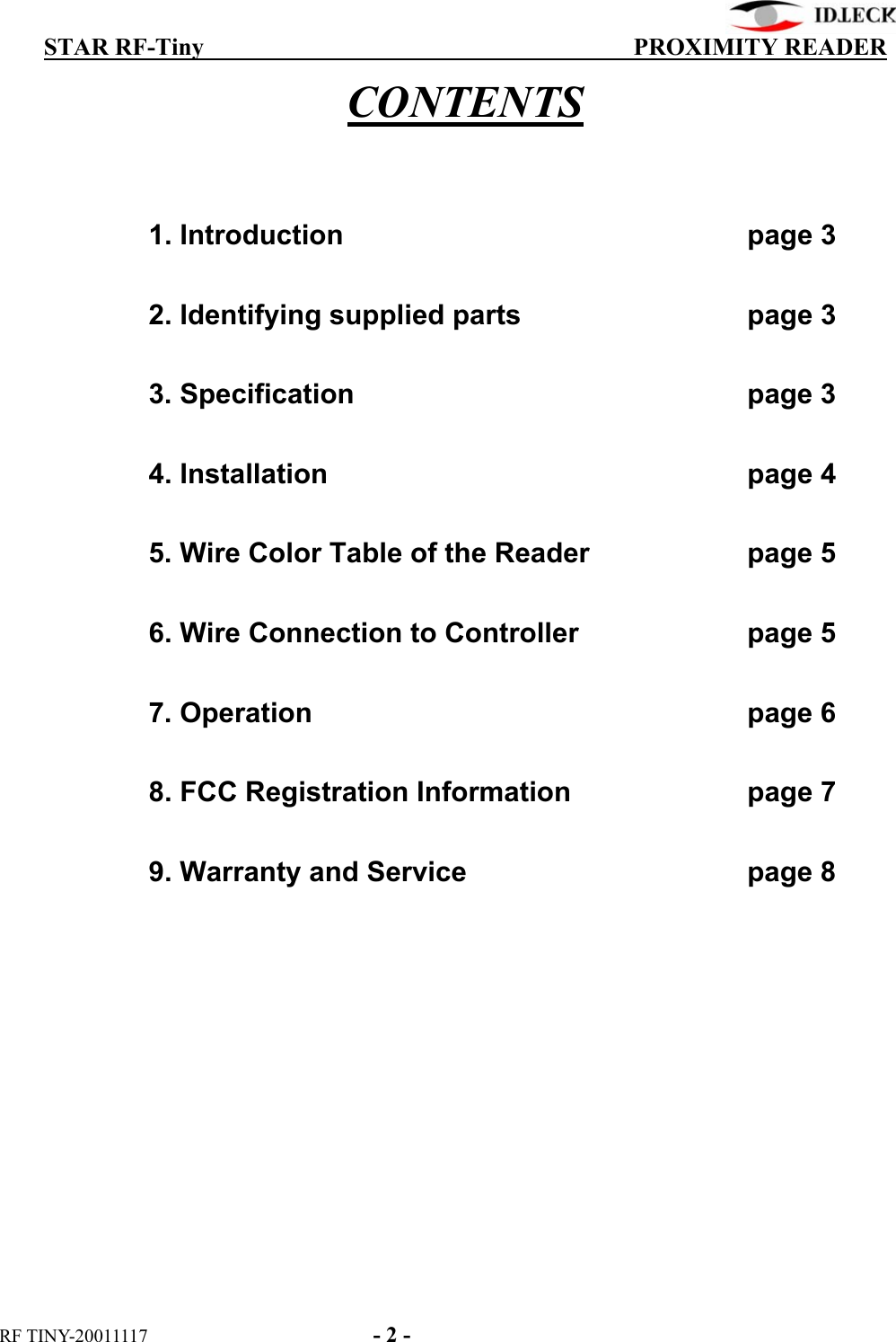 IDTECK STARRF-TINY Proximity Reader ( RF-Tiny) User Manual 285773