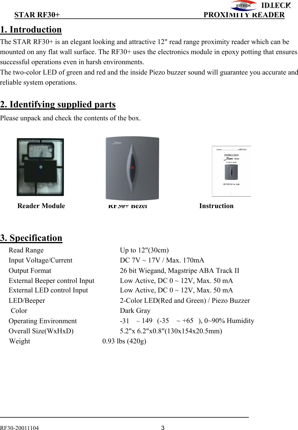 IDTECK STARRF30 Proximity Reader User Manual 285792