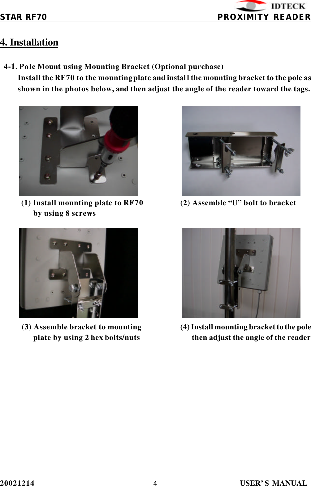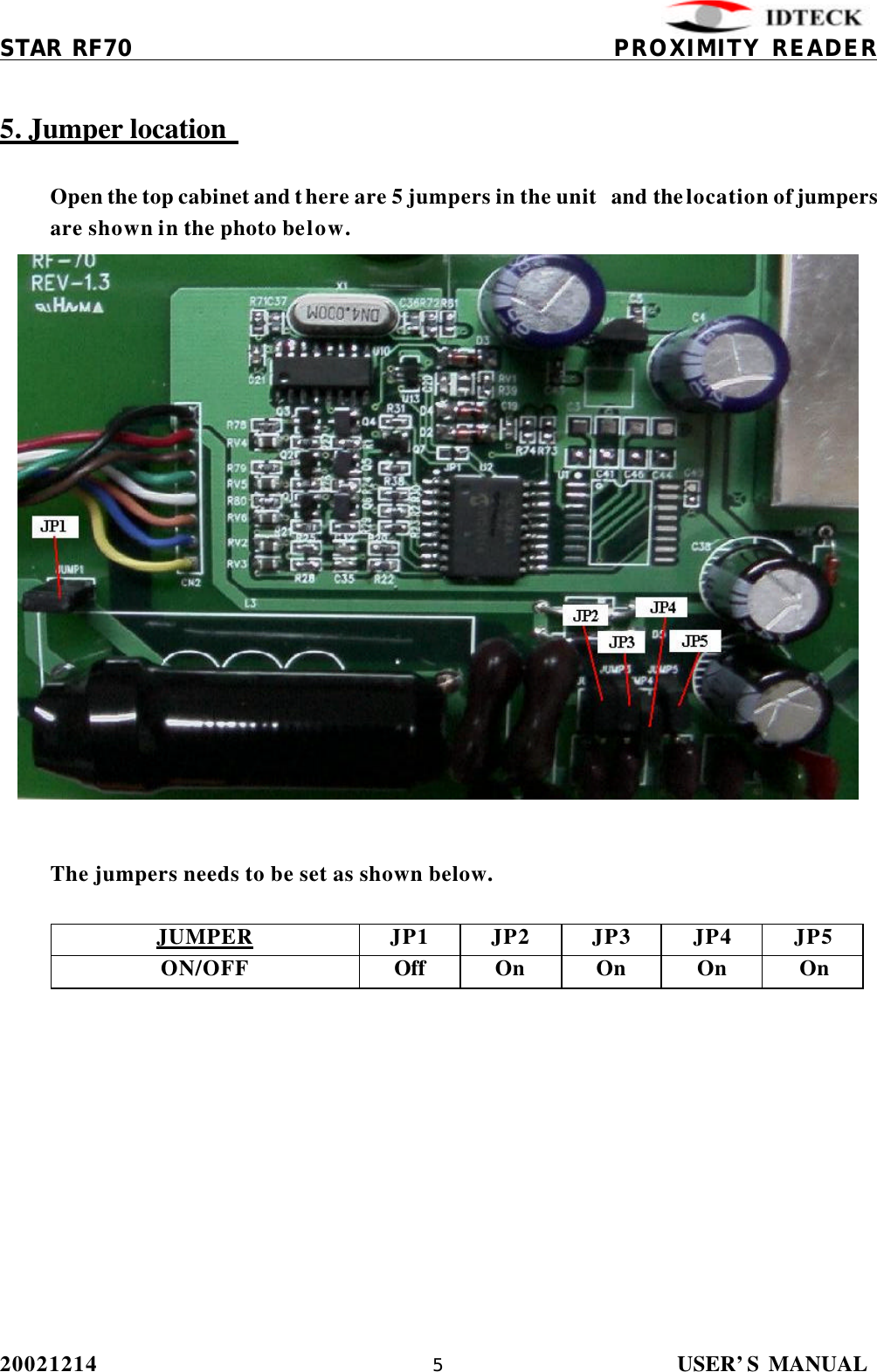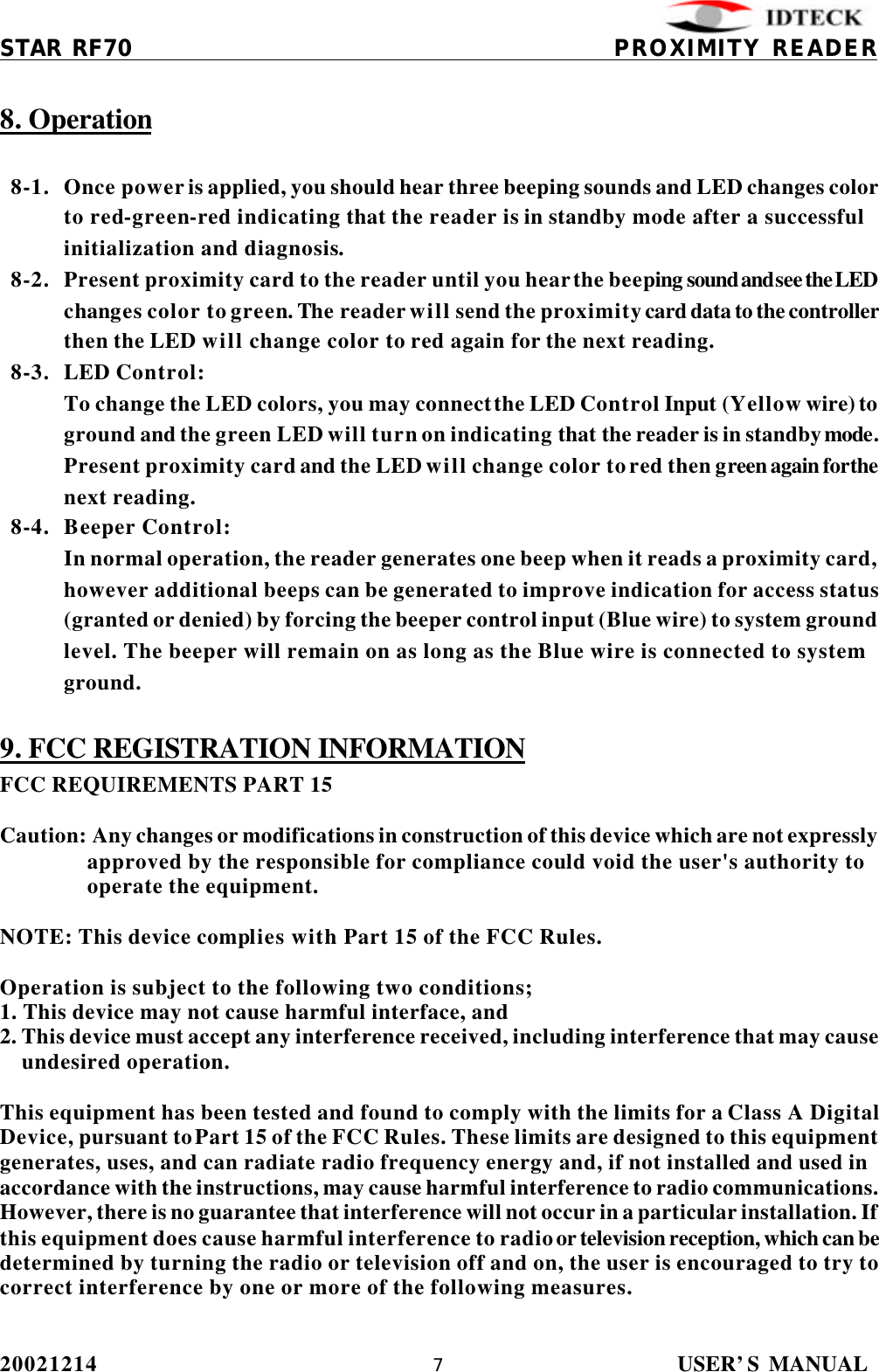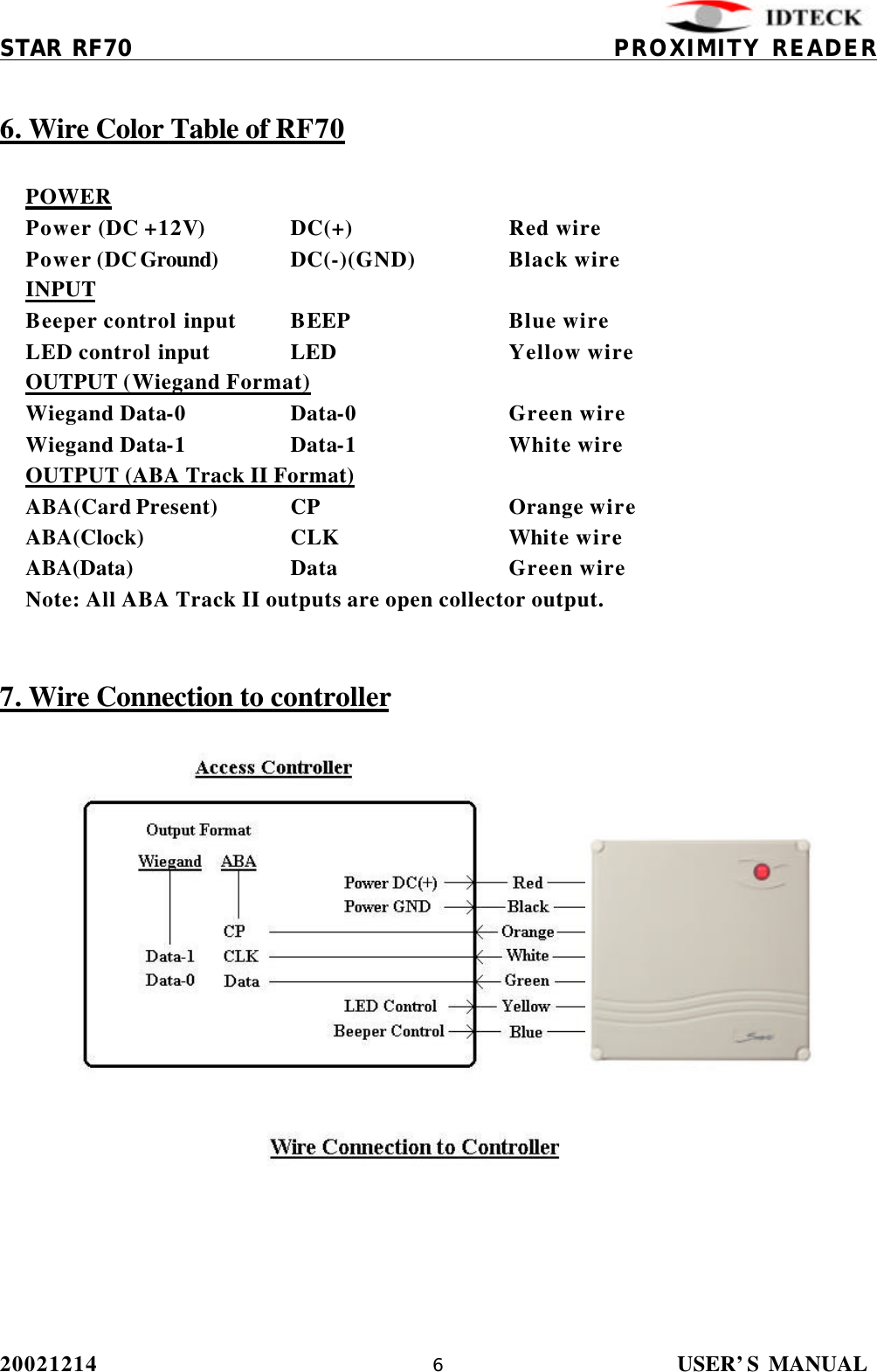 IDTECK STARRF70 Proximity Reader User Manual RF70 English
