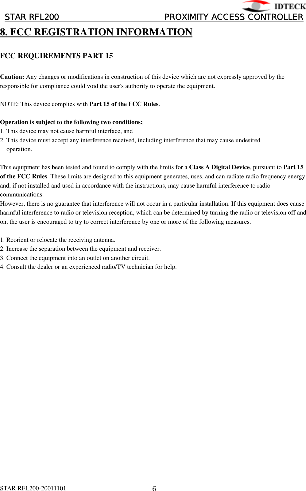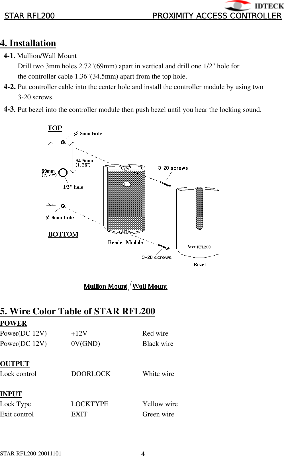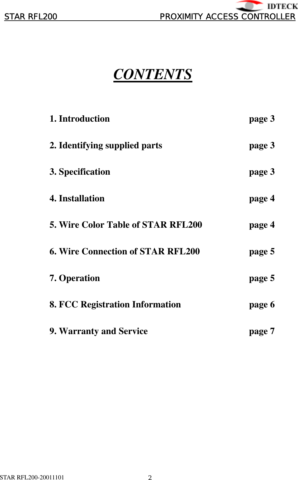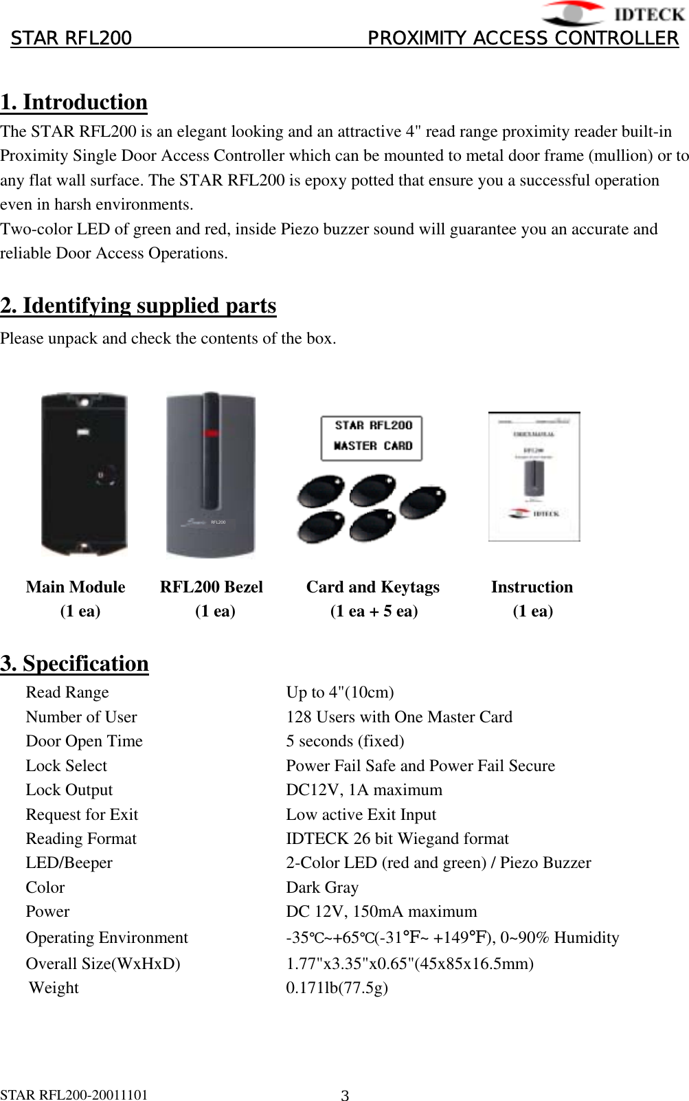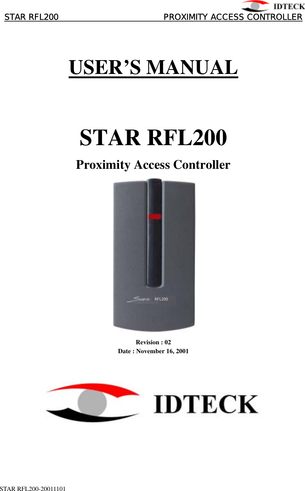 IDTECK STARRFL200 Proximity Access Controller User Manual