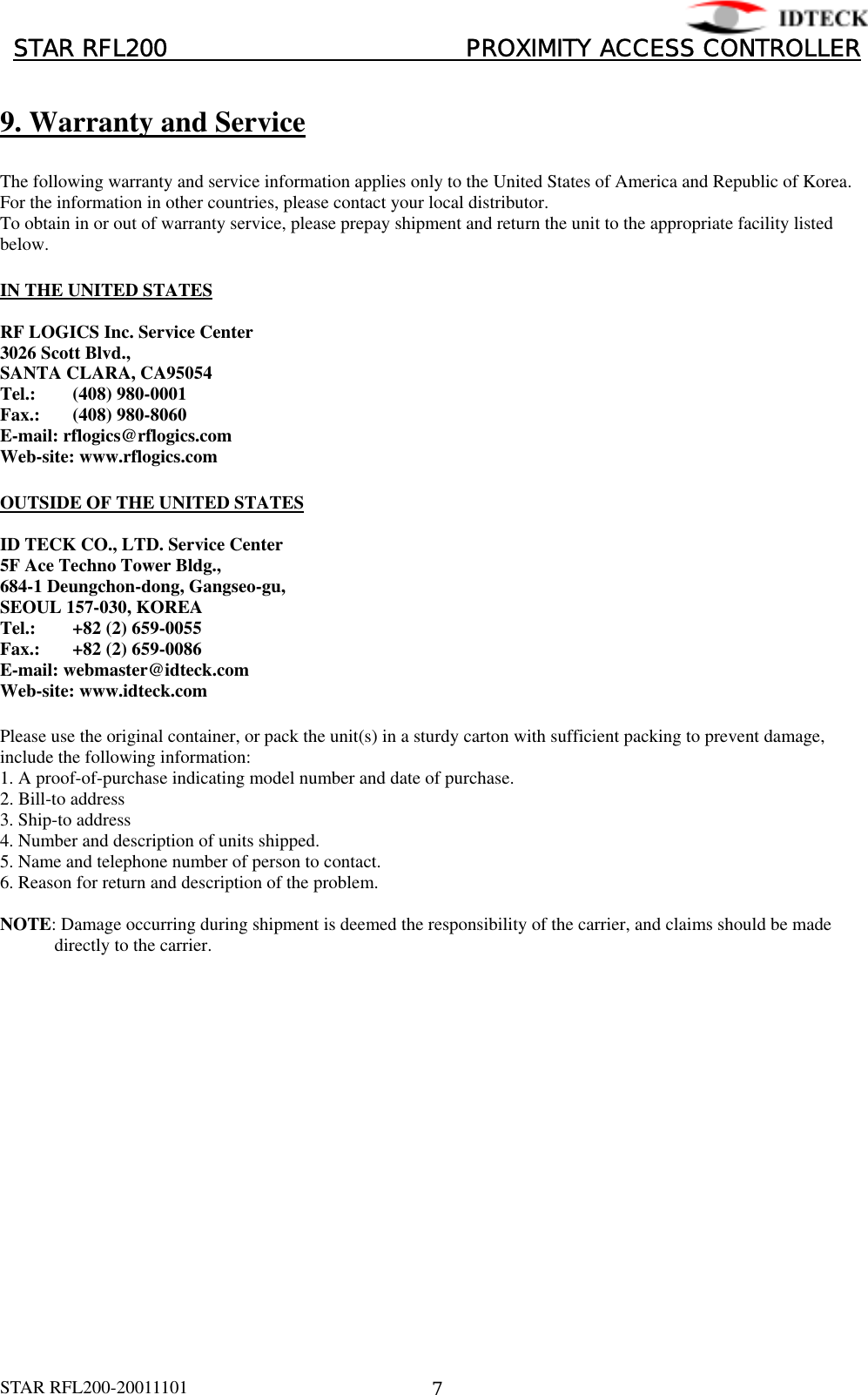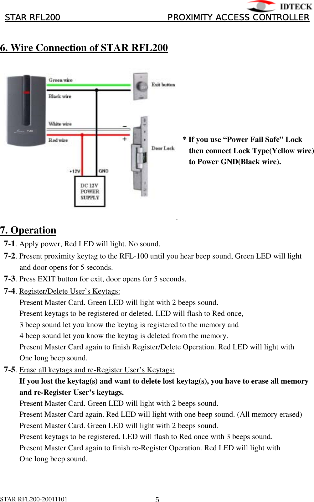 ID-Teck Co Ltd Proximity Access Controller Users Manual