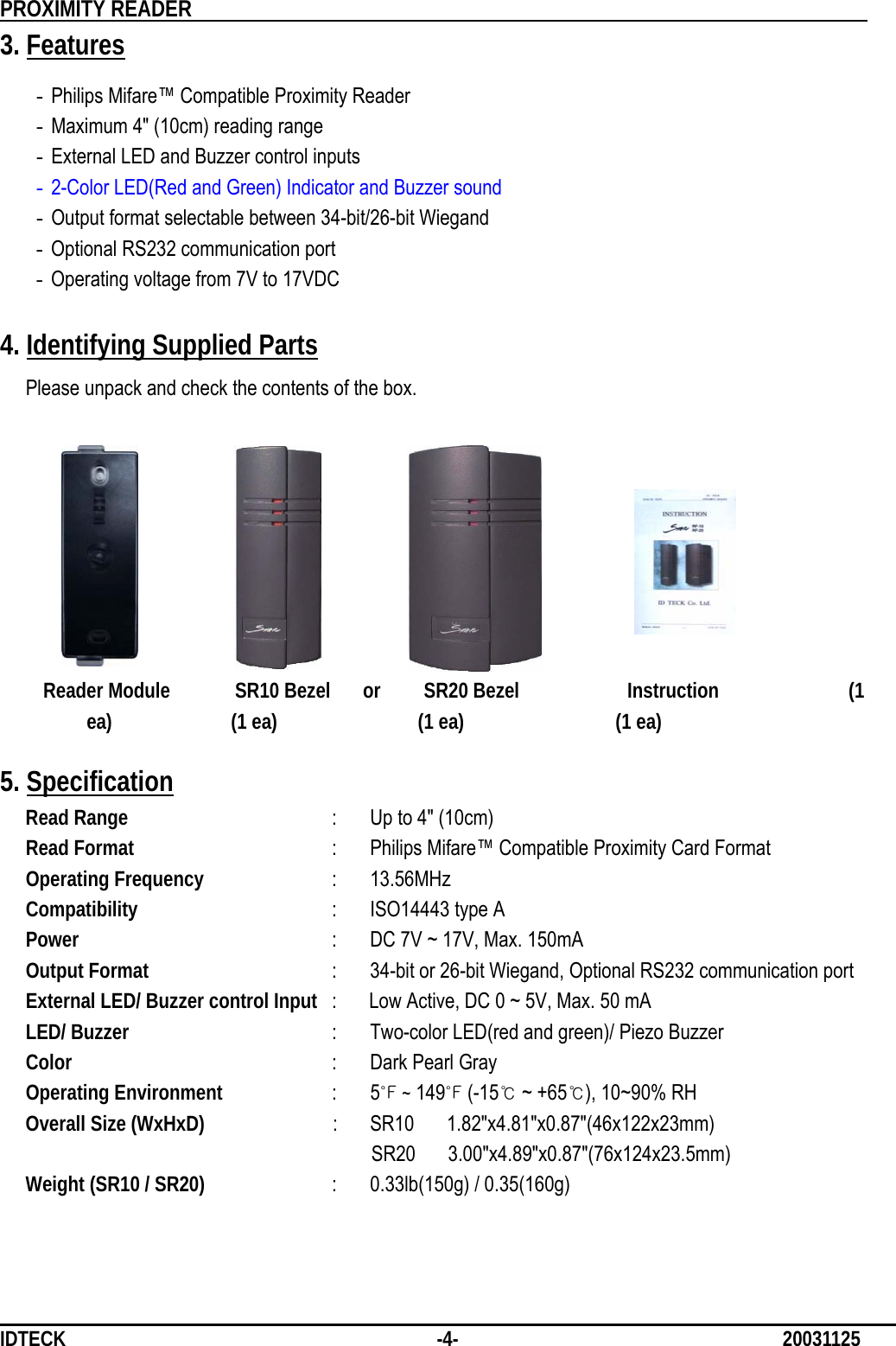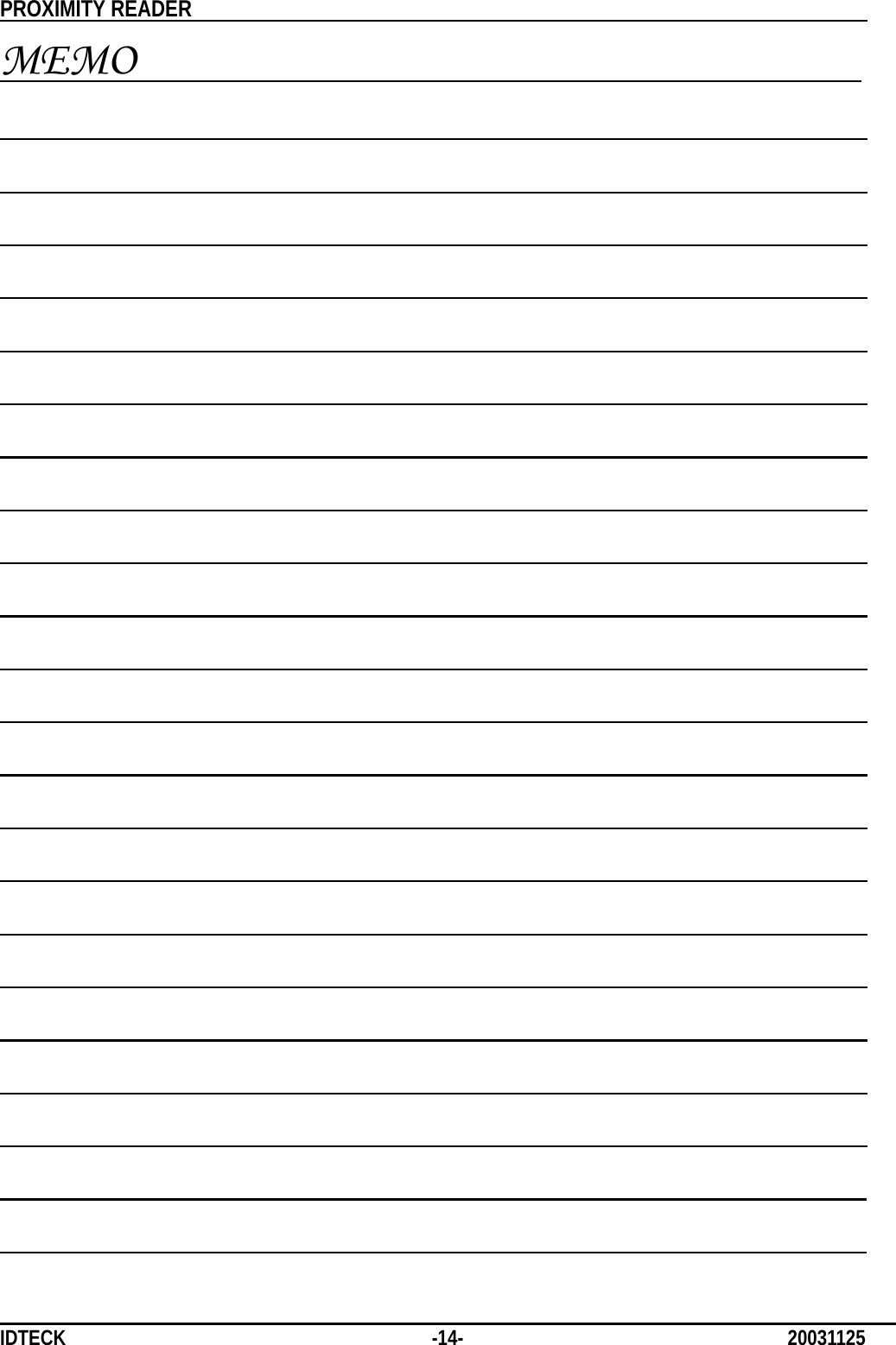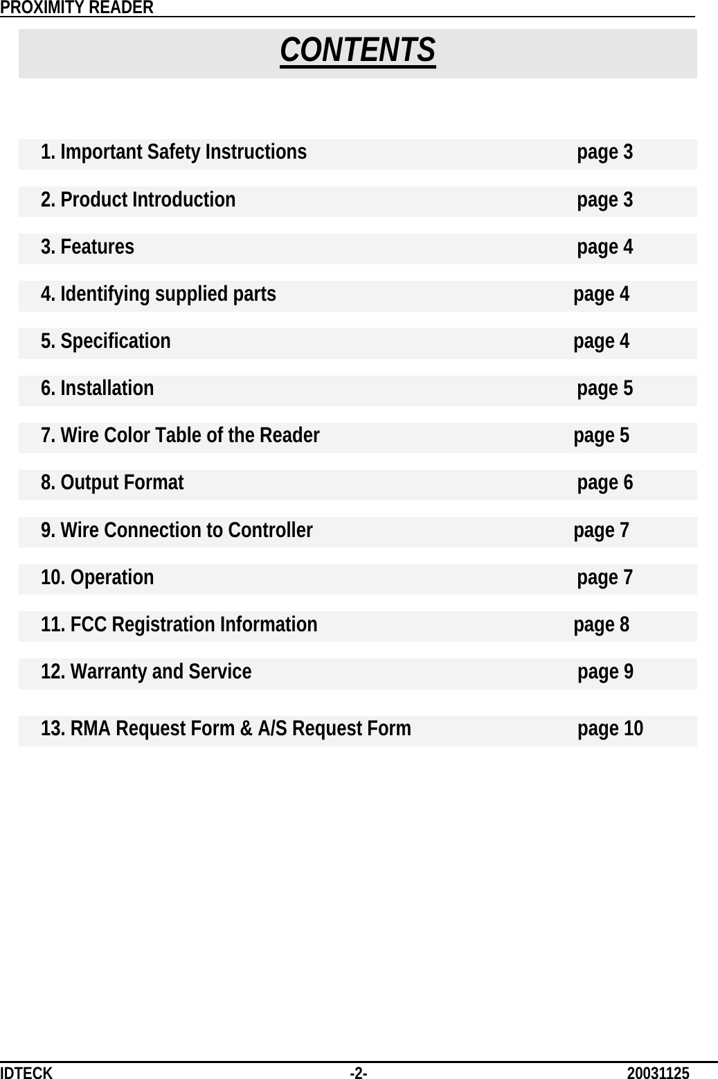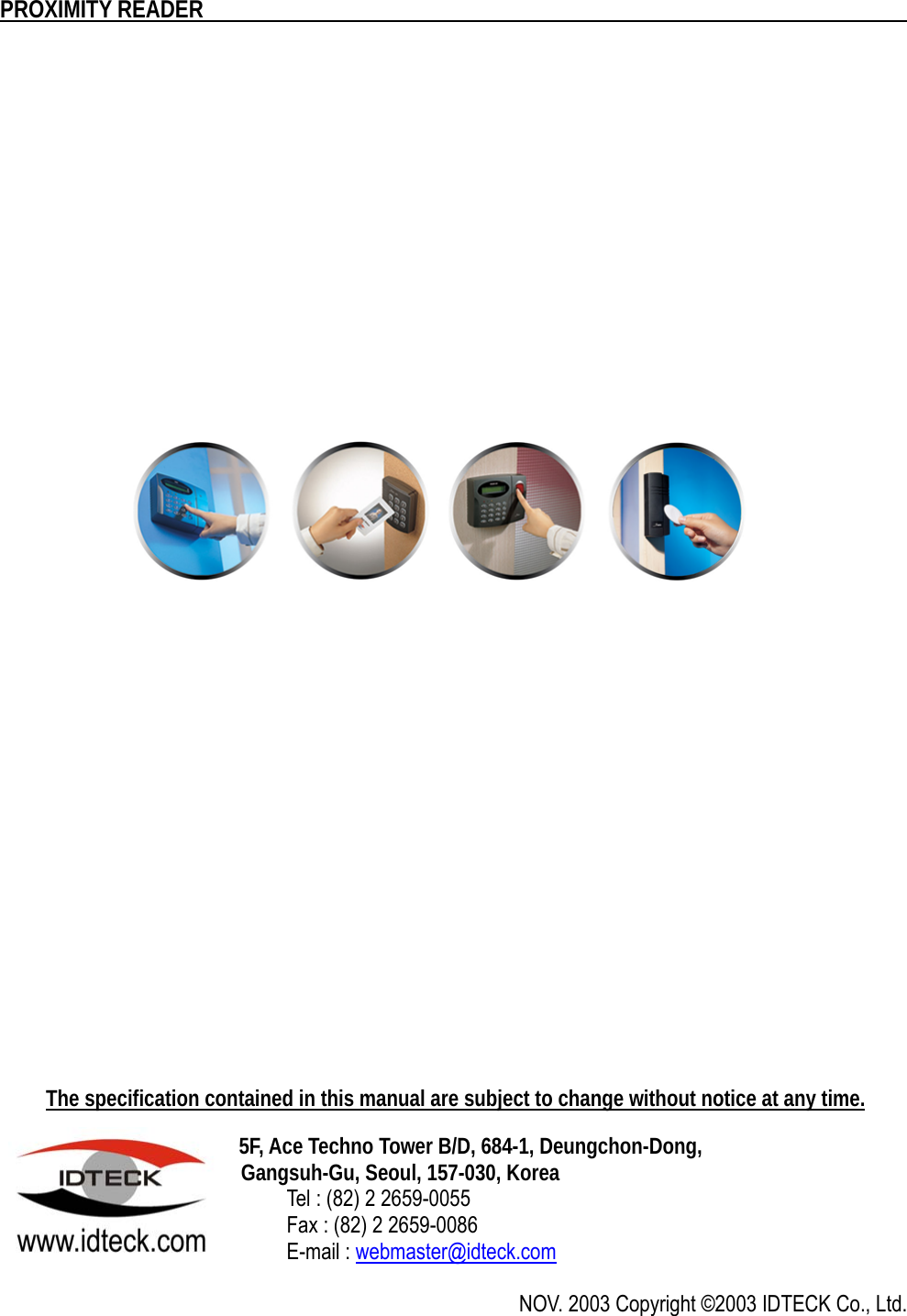 ID-Teck Co Ltd Proximity Reader Users Manual