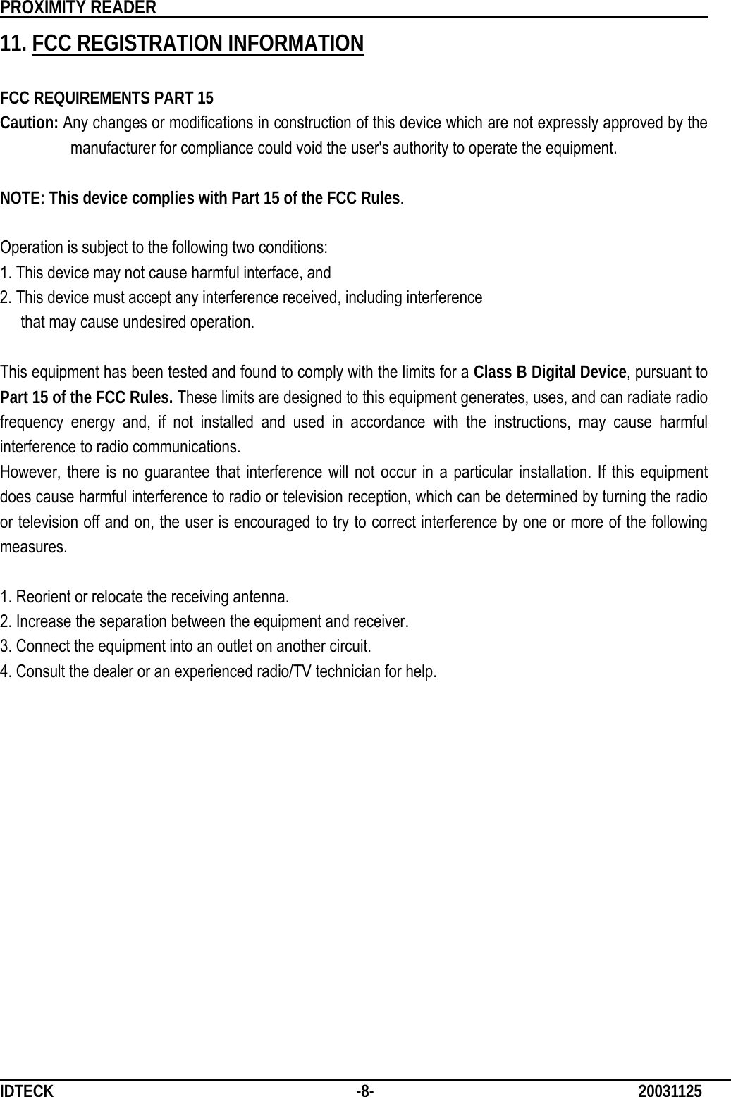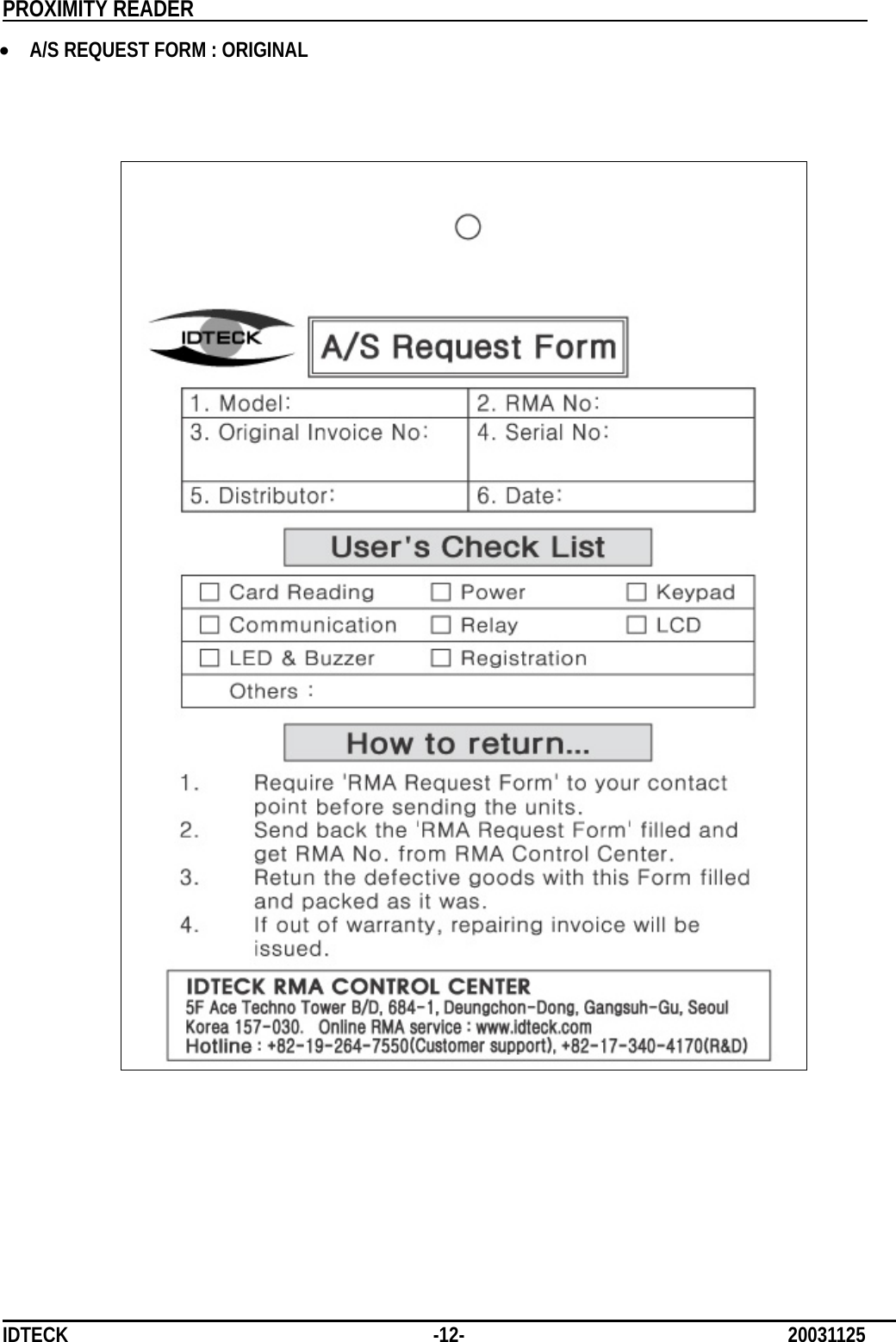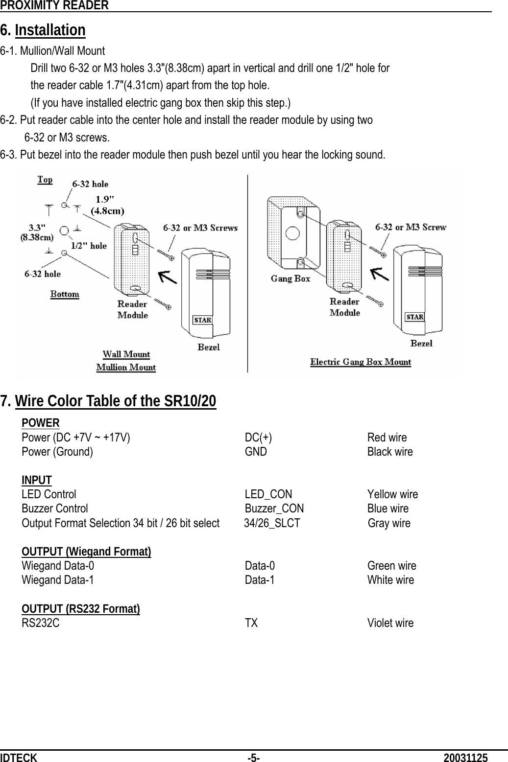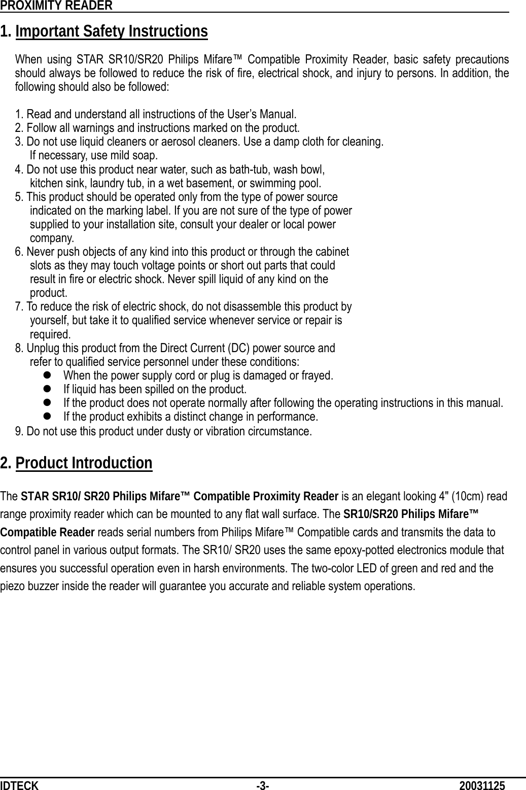 ID-Teck Co Ltd Proximity Reader Users Manual