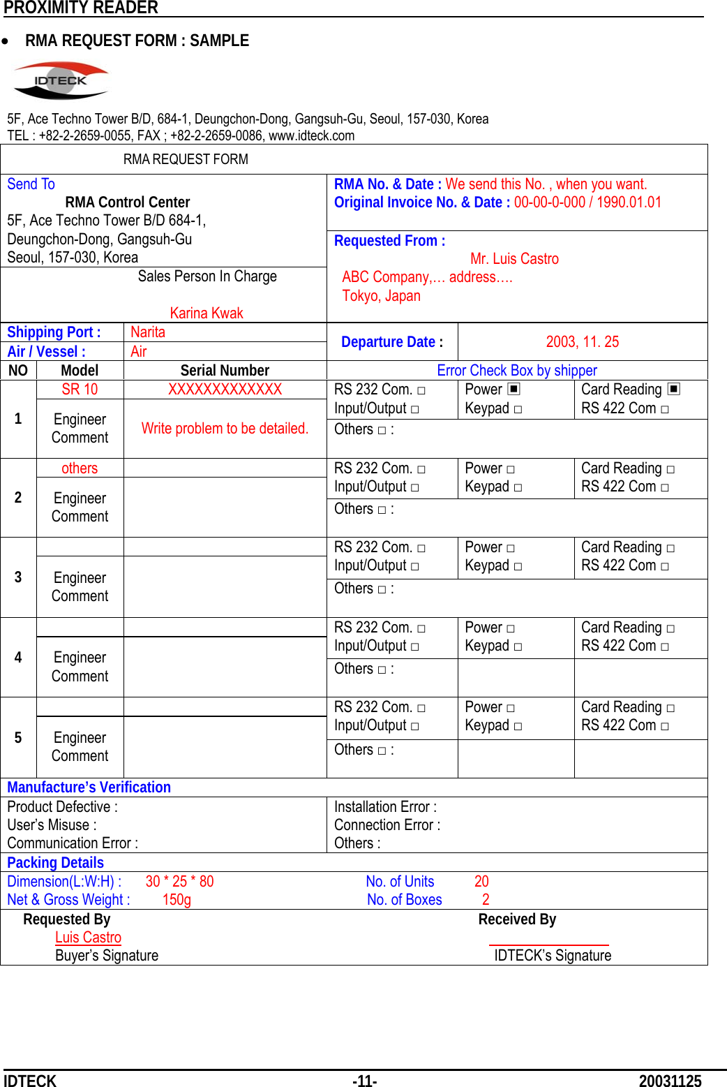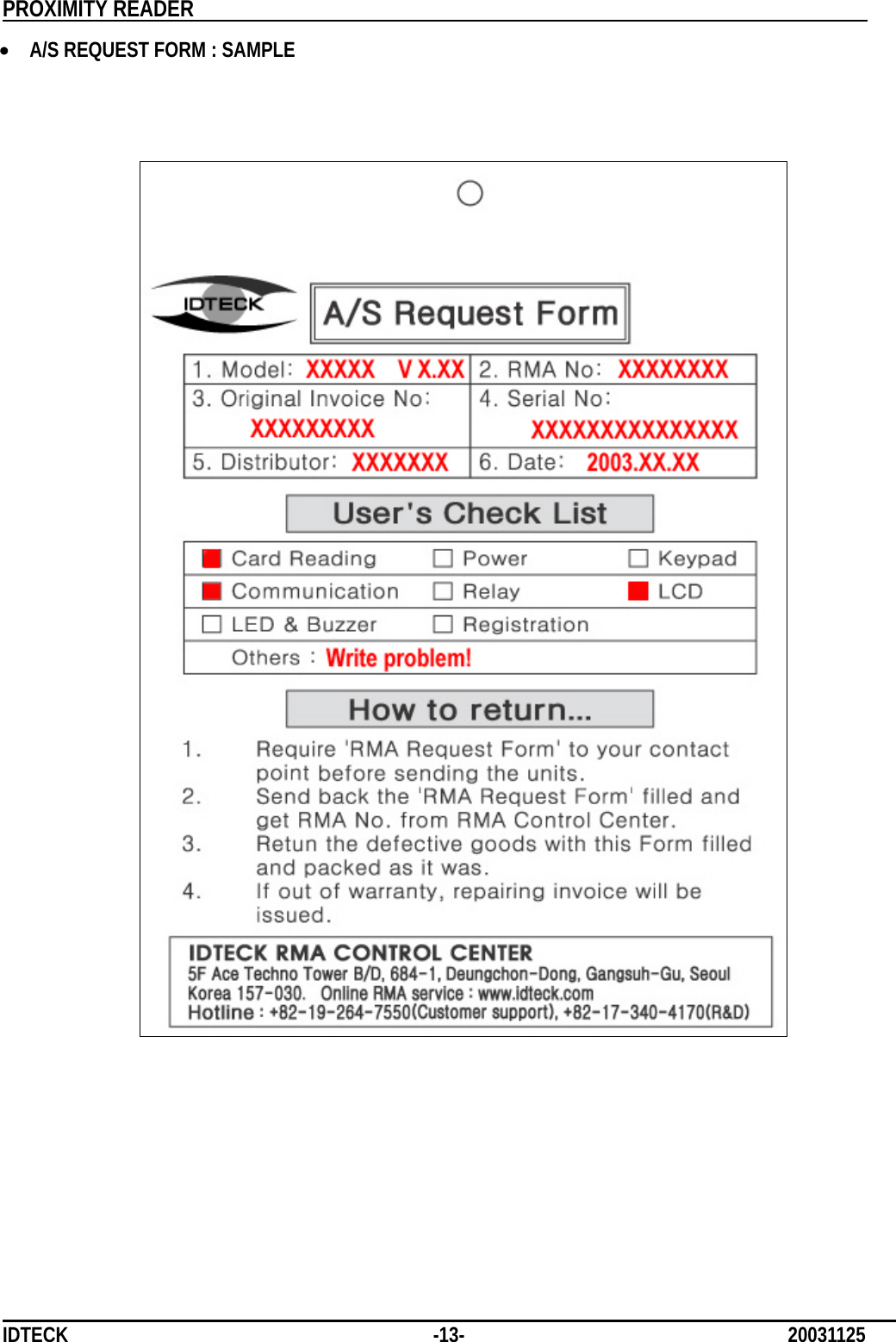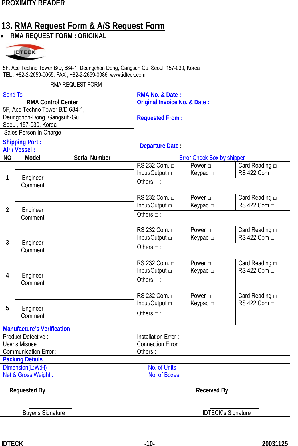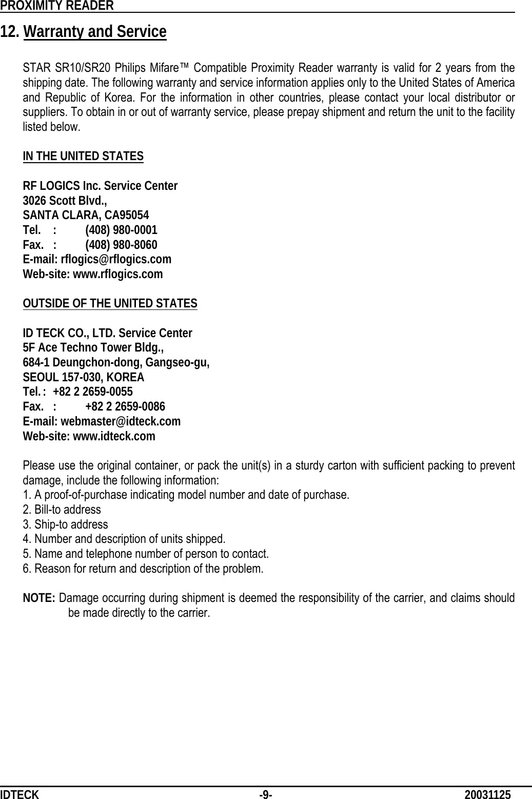 ID-Teck Co Ltd Proximity Reader Users Manual