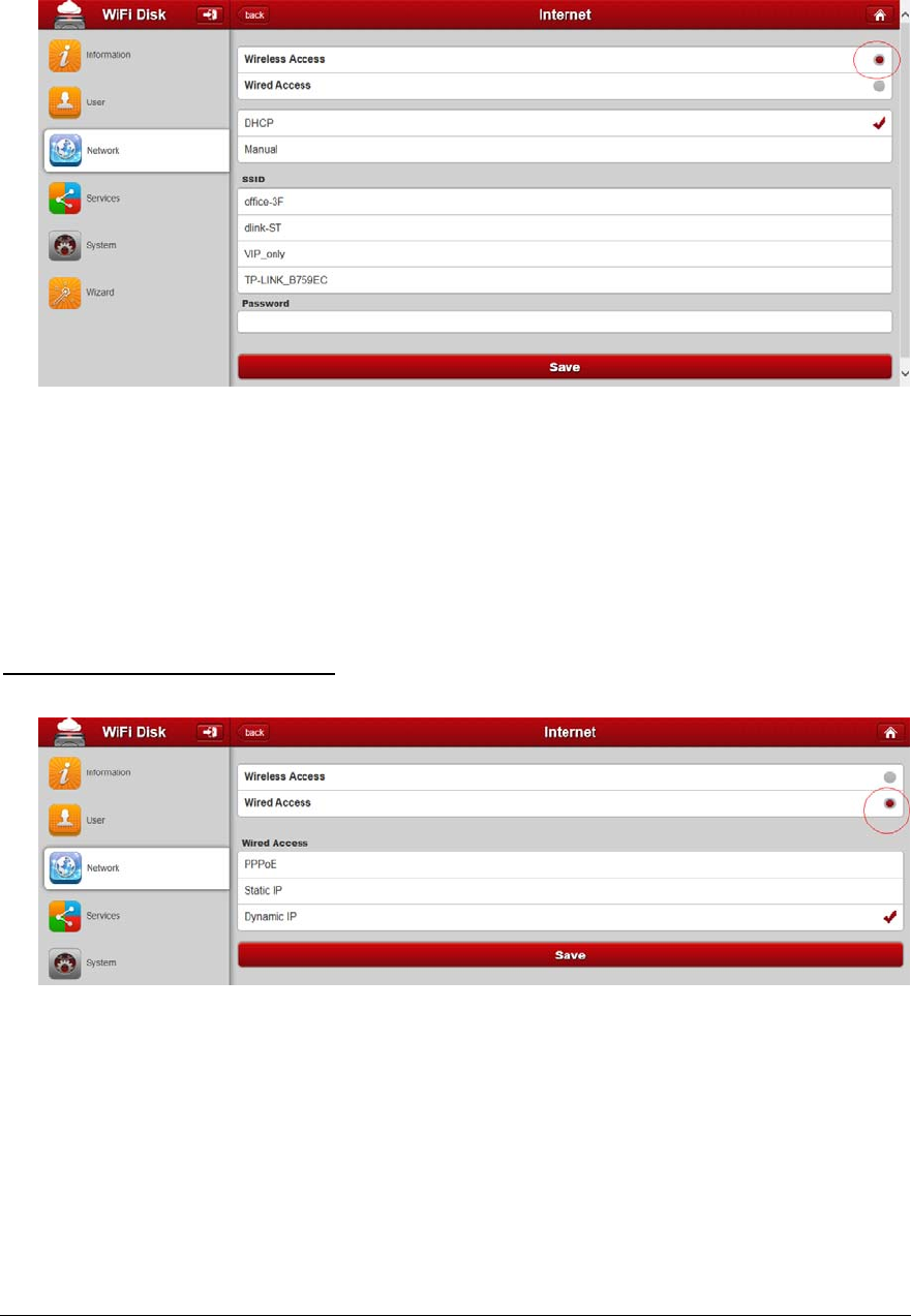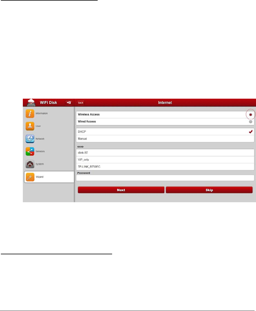 A. Wireless Access. Connecting the Wi-Fi HDD to another wireless device to have the internet