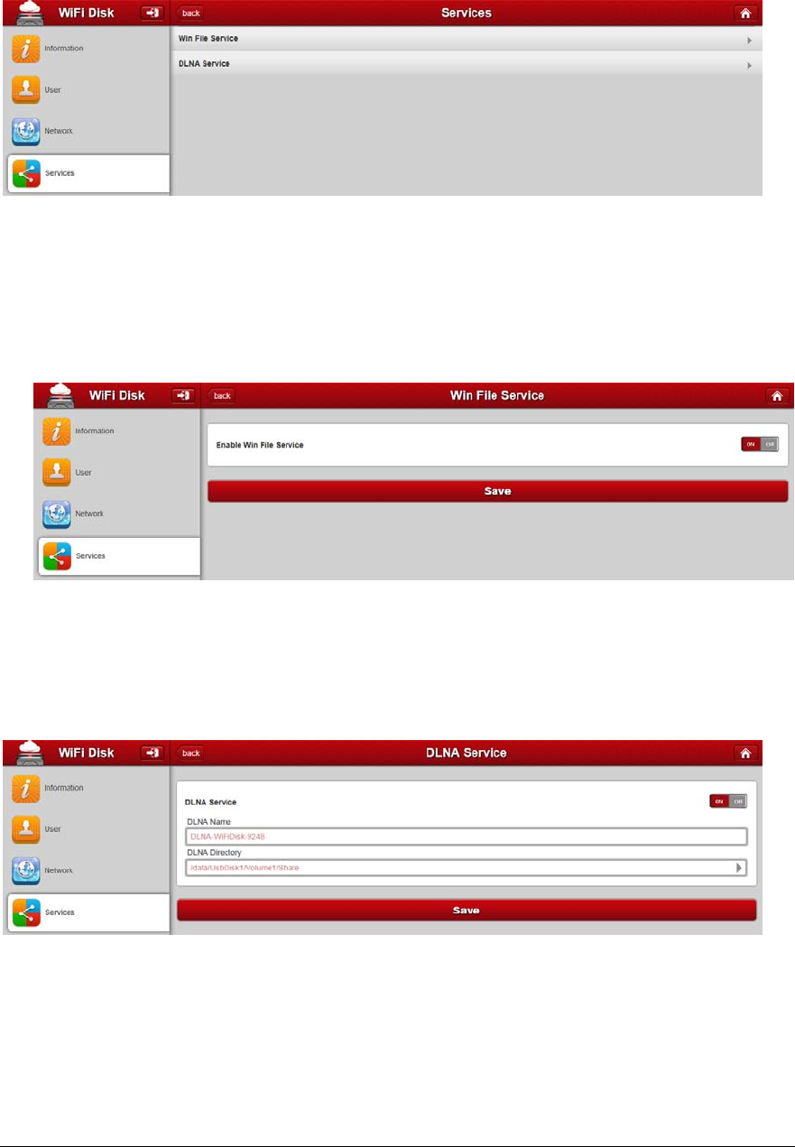 Windows sharing and DLNA service are available to access the Wi-Fi HDD