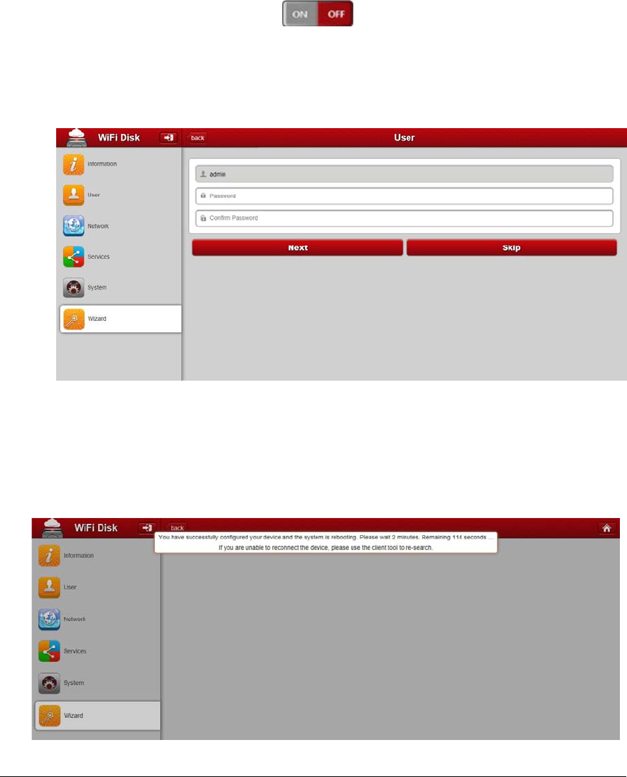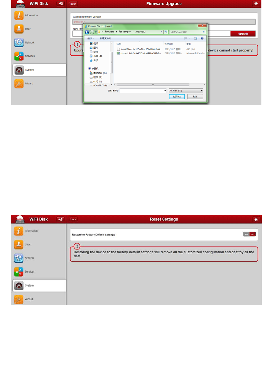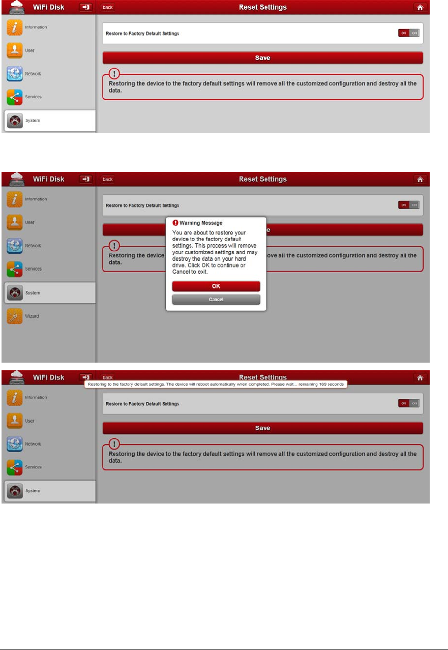 The Warning Message window will appear. Click on ”ok”, the Wi-Fi HDD will automatically reboot