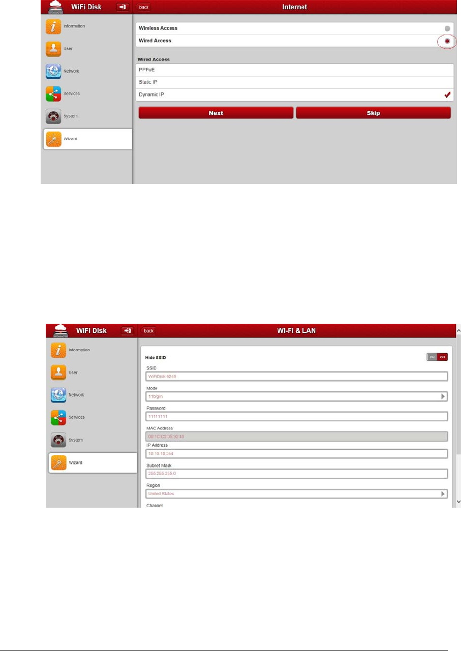 By selecting the Wired Access option, the Dynamic IP is selected as the default setting. You can