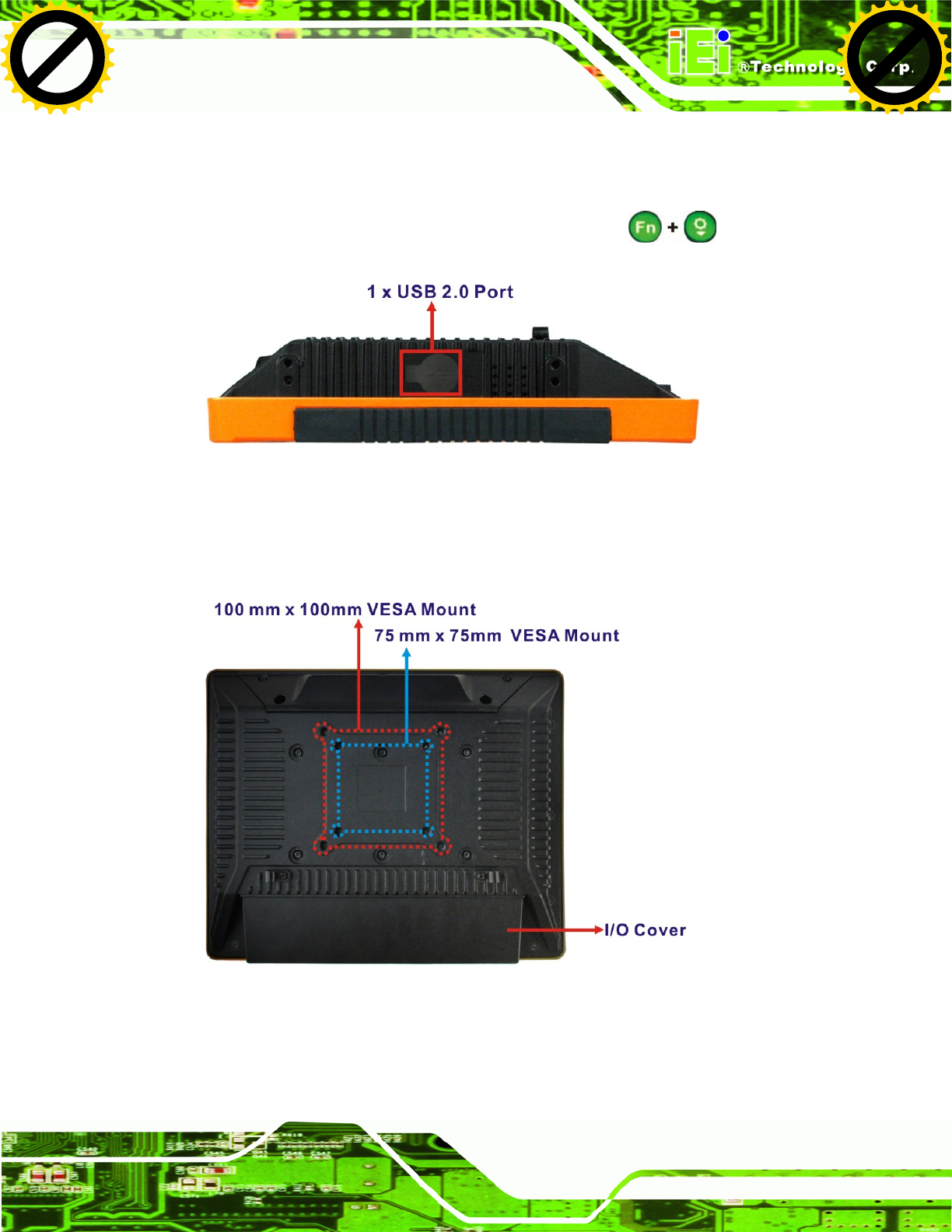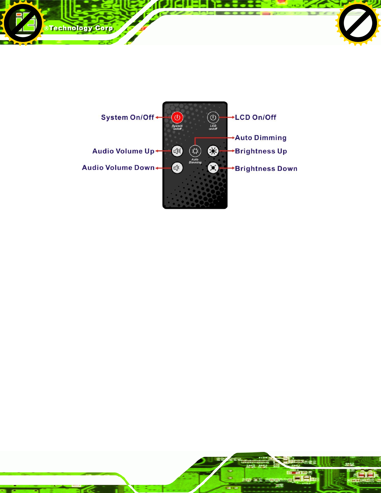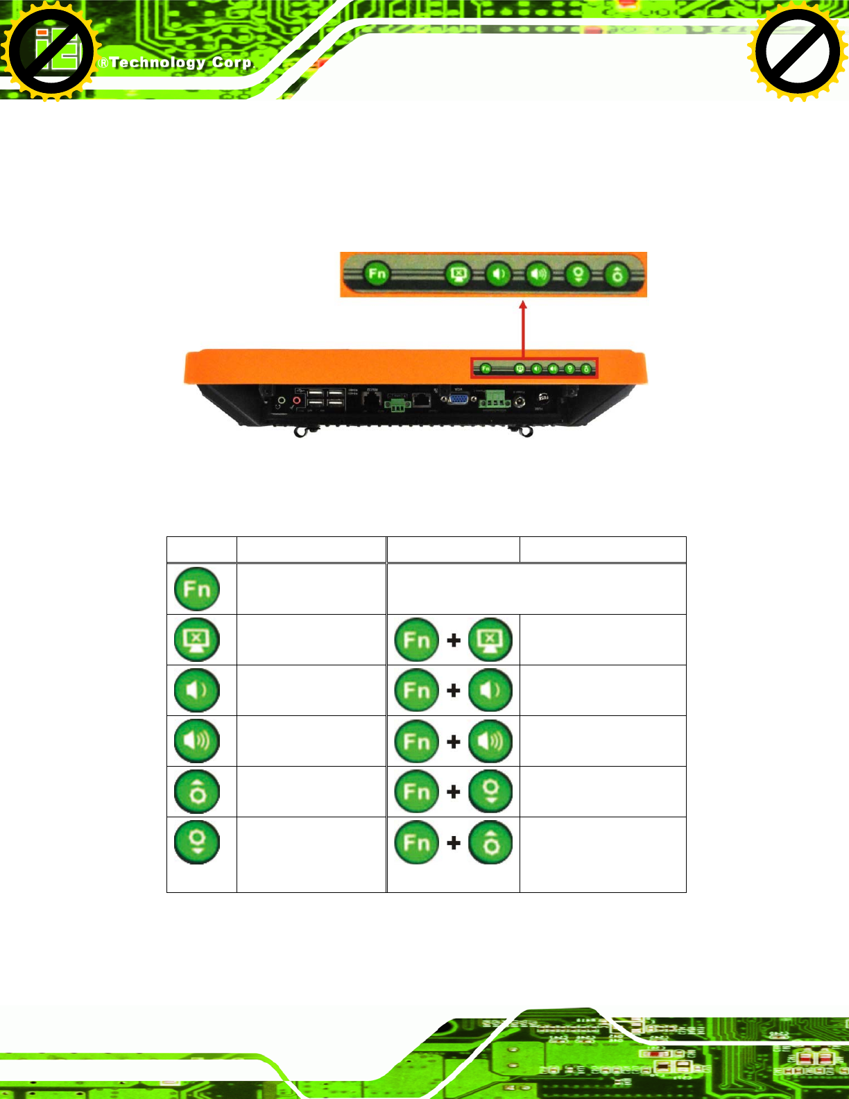 UPC-V312-D525 contains several function keys that control audio volume, LCD