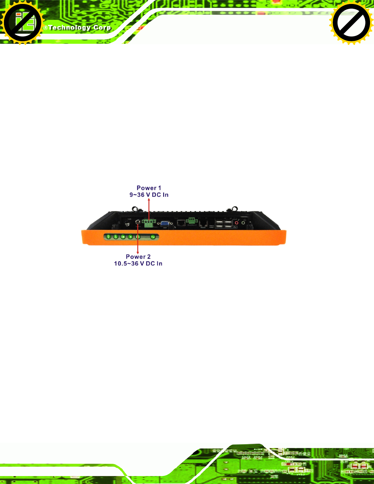 Power 2 (DC jack): 10.5 V (+/-0.3 V) ~ 36 V