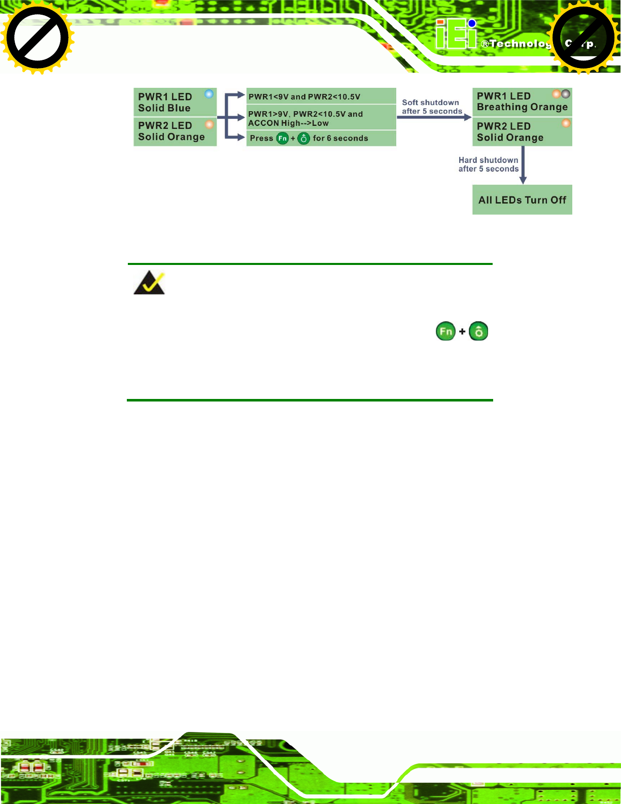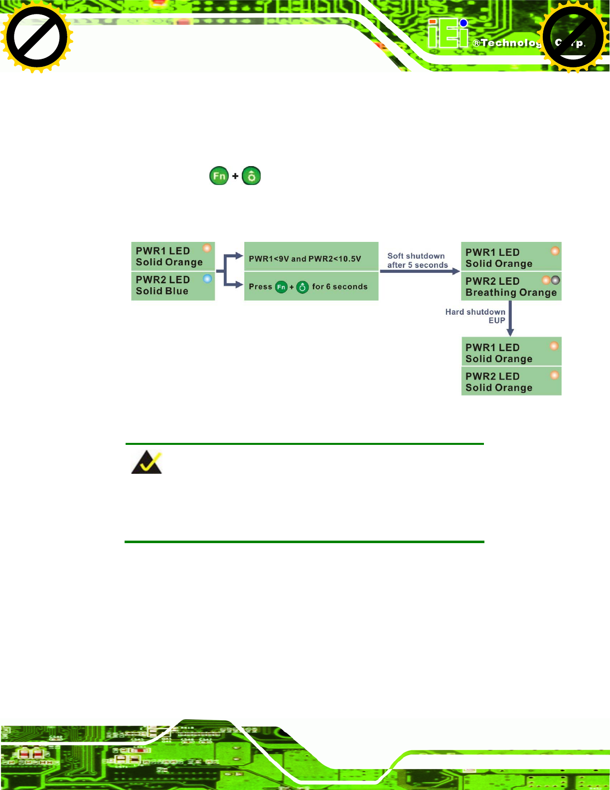 The following flow diagram shows the system shutdown process and the LED statuses.