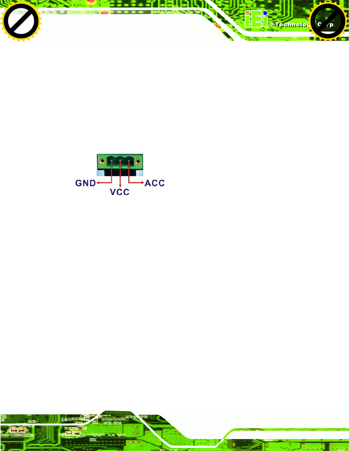 When the system is in ACC Off mode, the main power input is from the Power 2 connector.