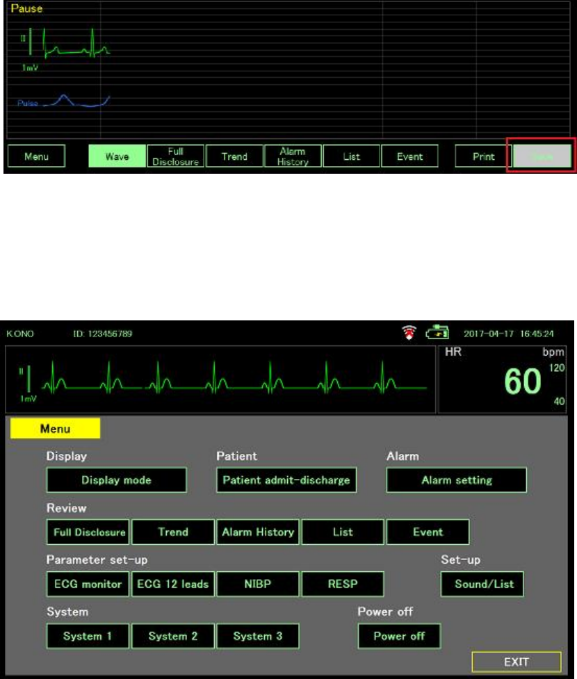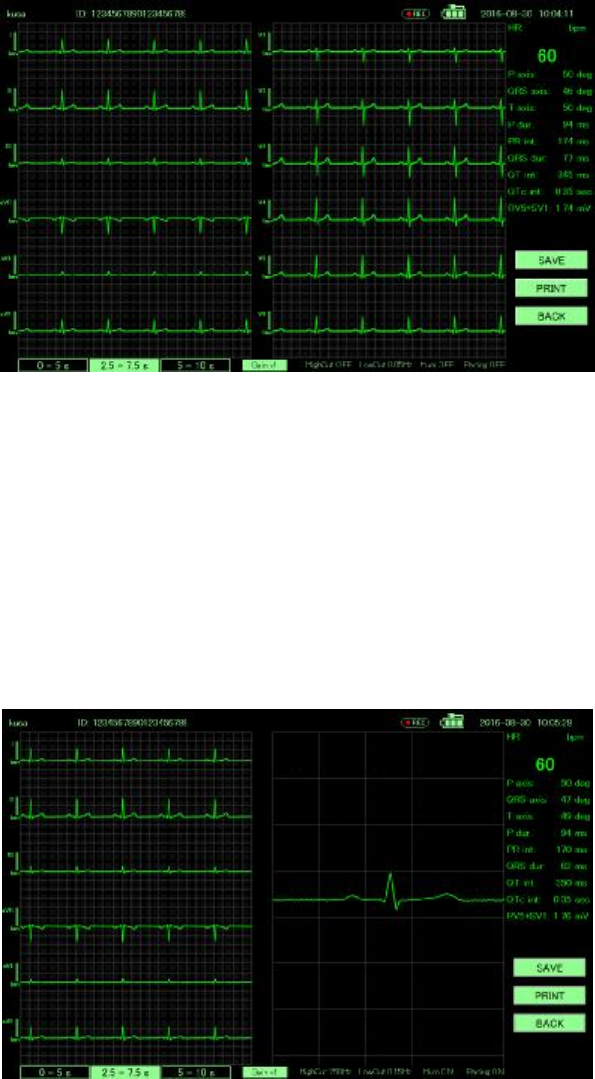 The ECG waveform is displayed in baseline