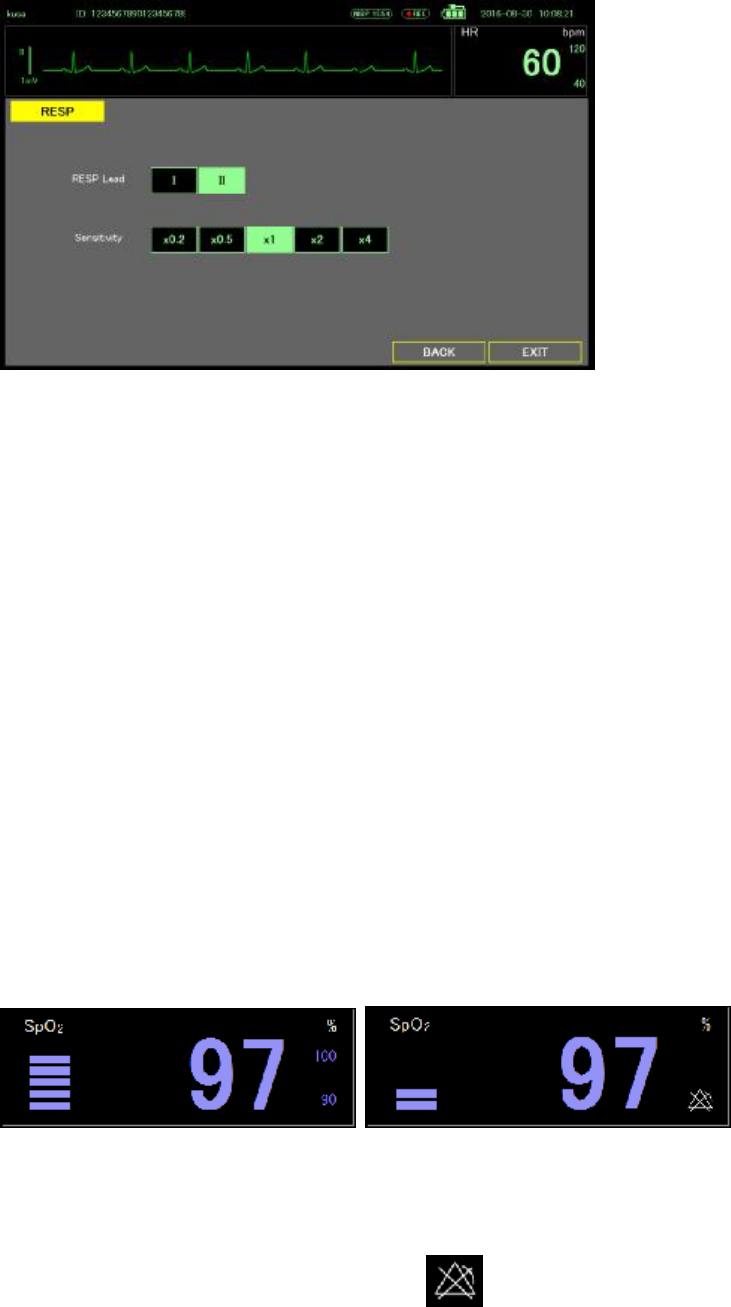 The amplitude of the respiration waveform is too low.