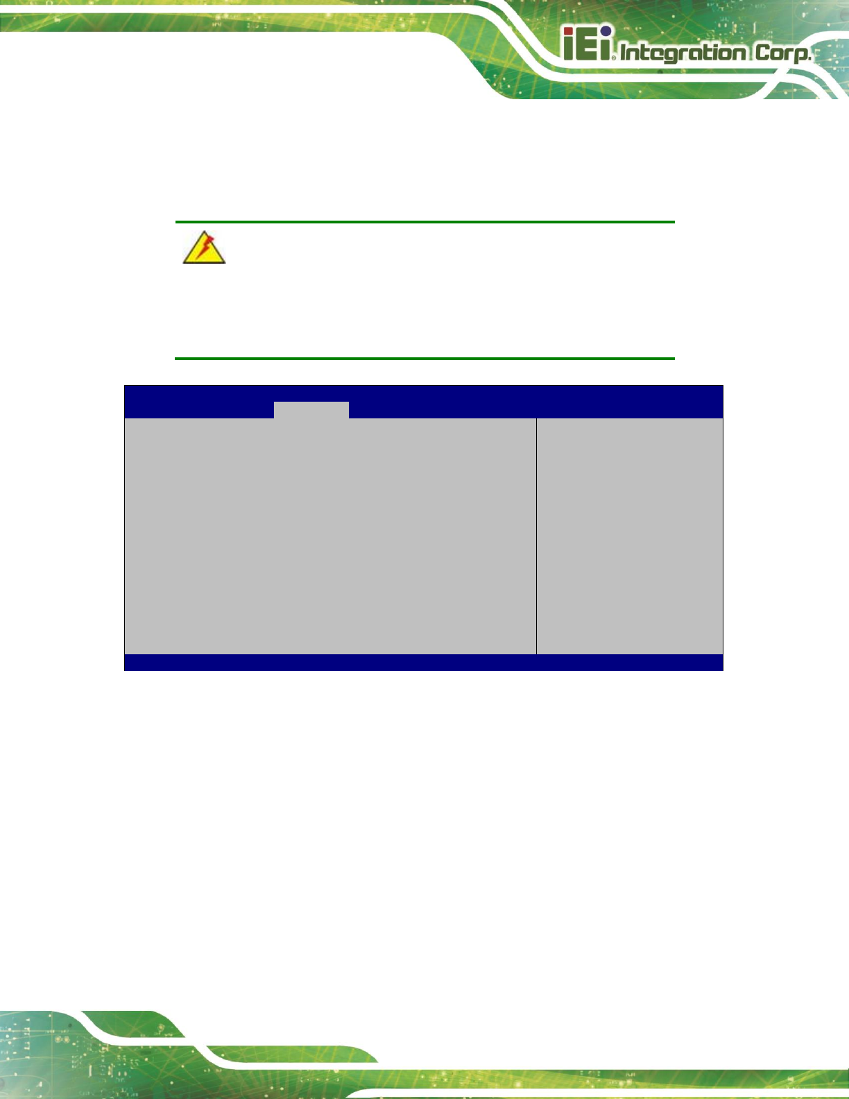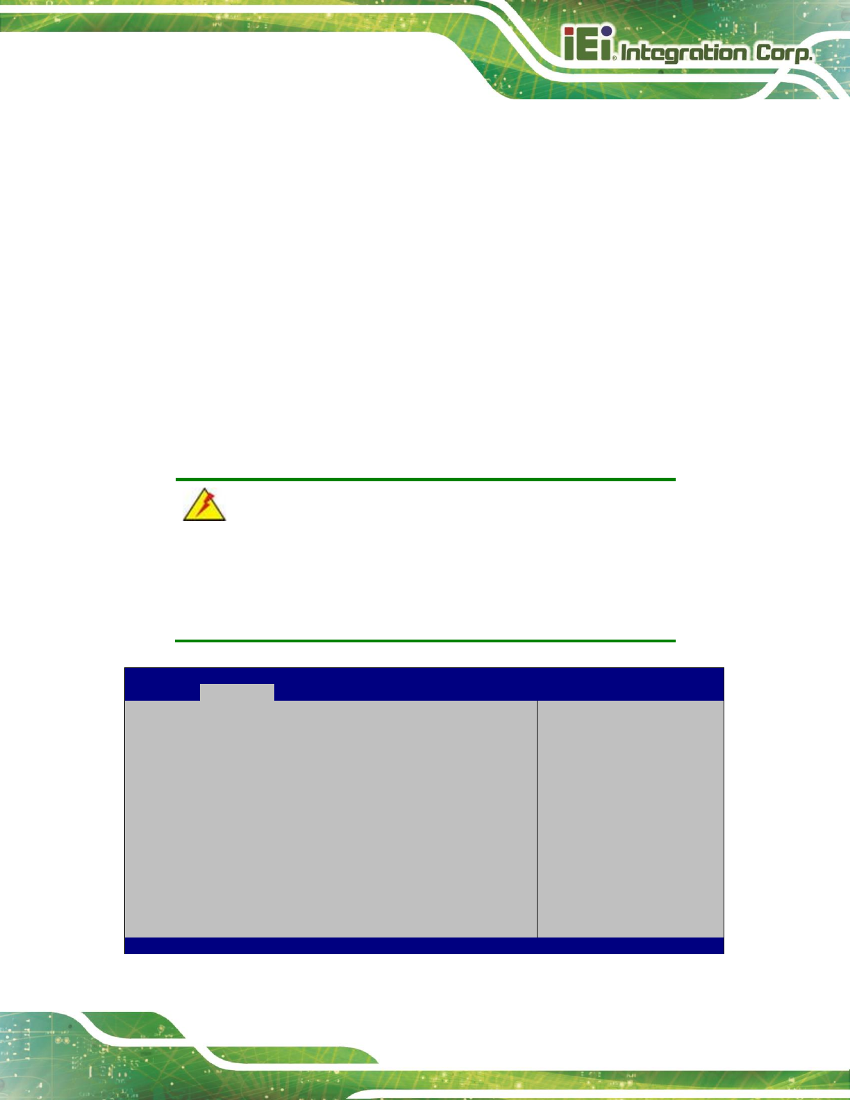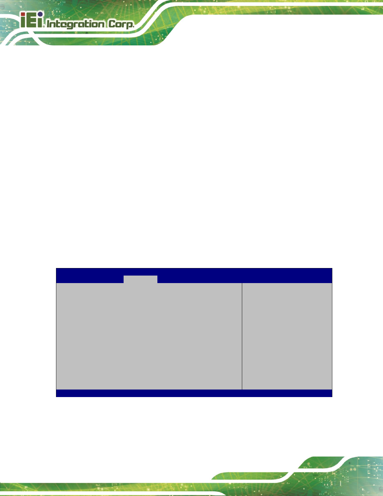 4.1.4 BIOS Menu Bar ................................................................................................ 19