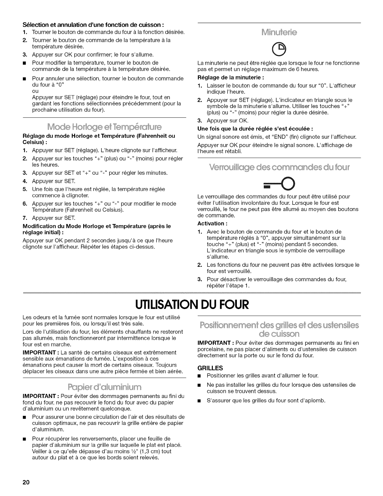 UTILISATION DU FOUR ............................................................... 20