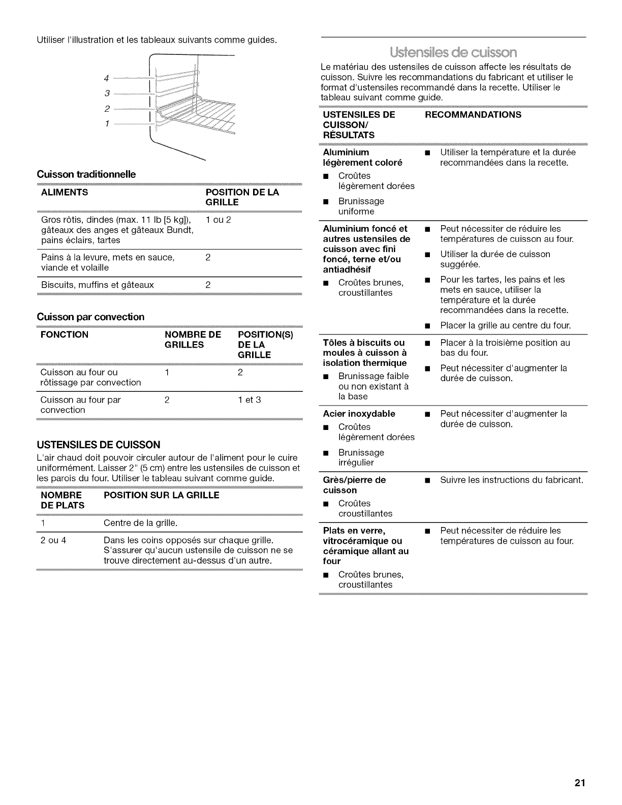 Ustensiles de cuisson ................................................................ 21
