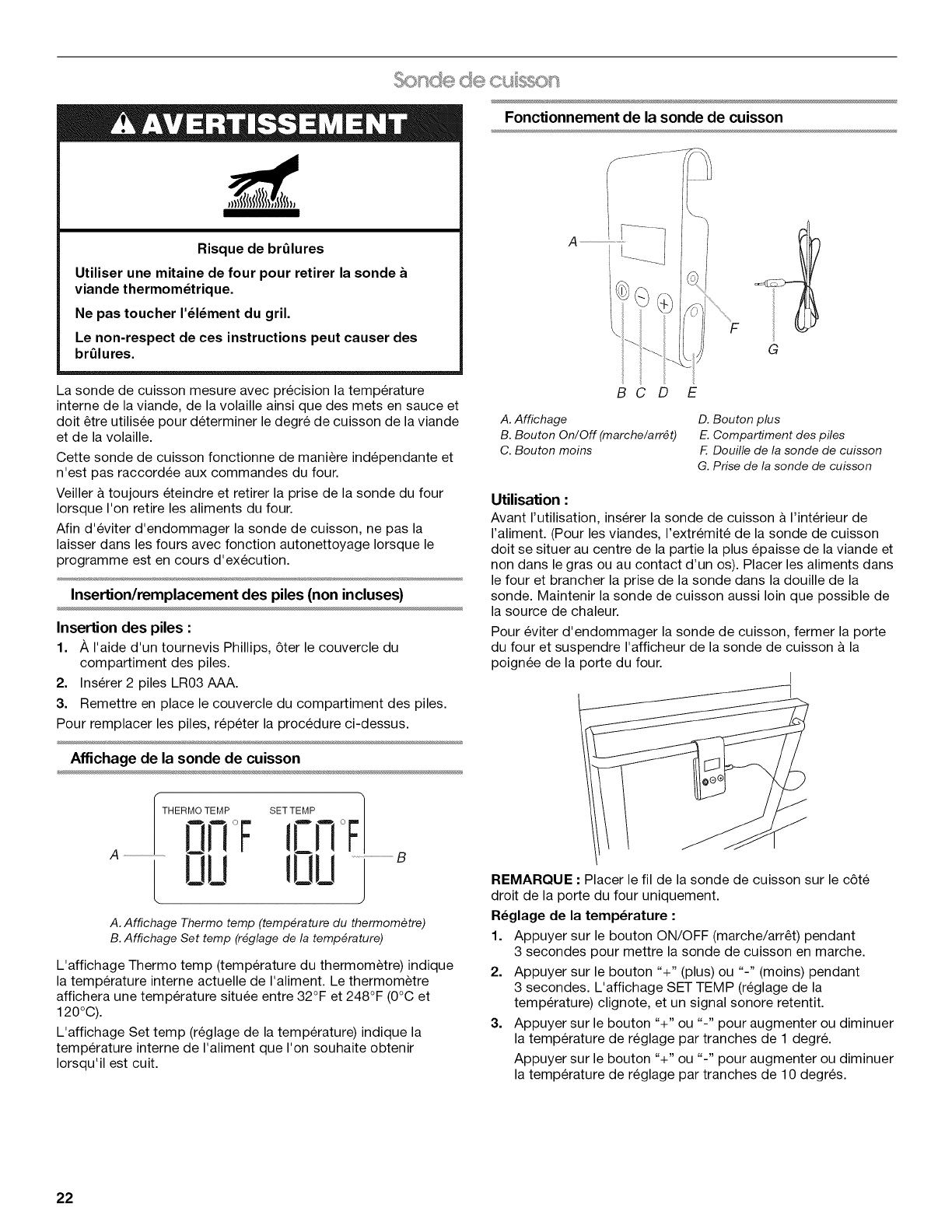 Sonde de cuisson ....................................................................... 22