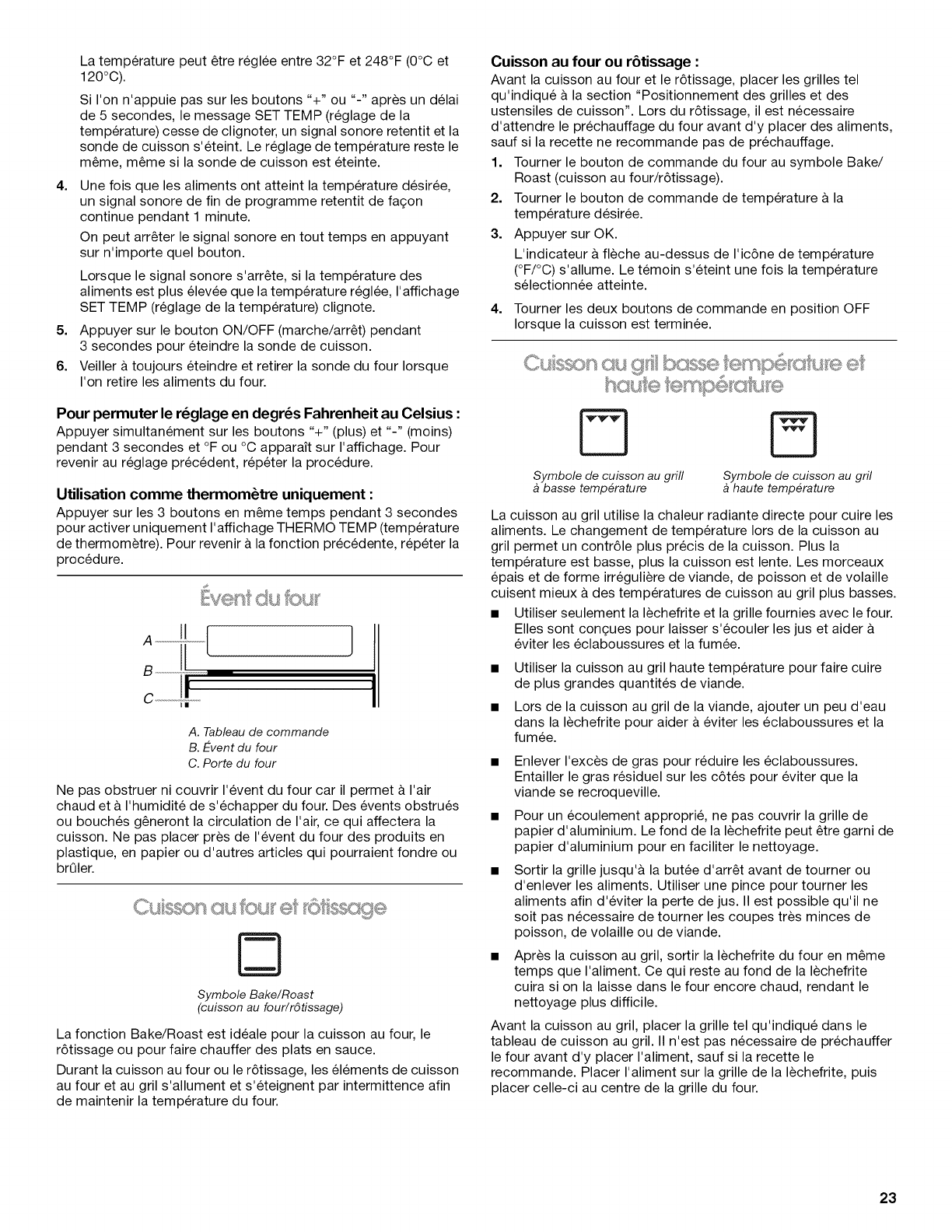 Cuisson au four et r6tissage ...................................................... 23