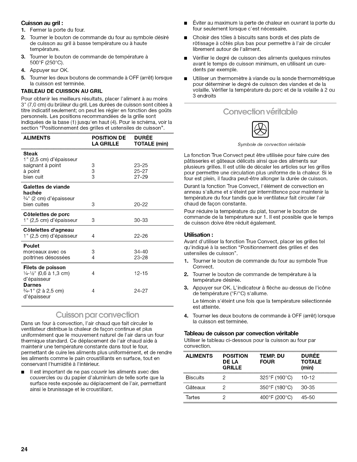 Cuisson par convection ............................................................. 24