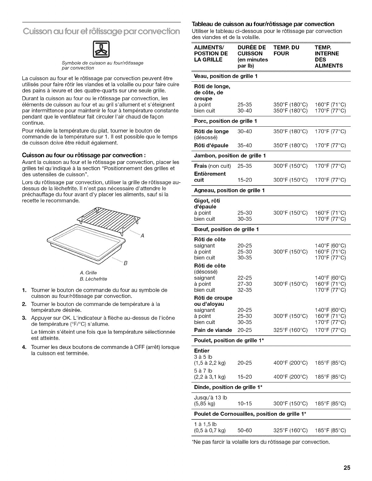 Cuisson au four et r6tissage par convection ............................. 25