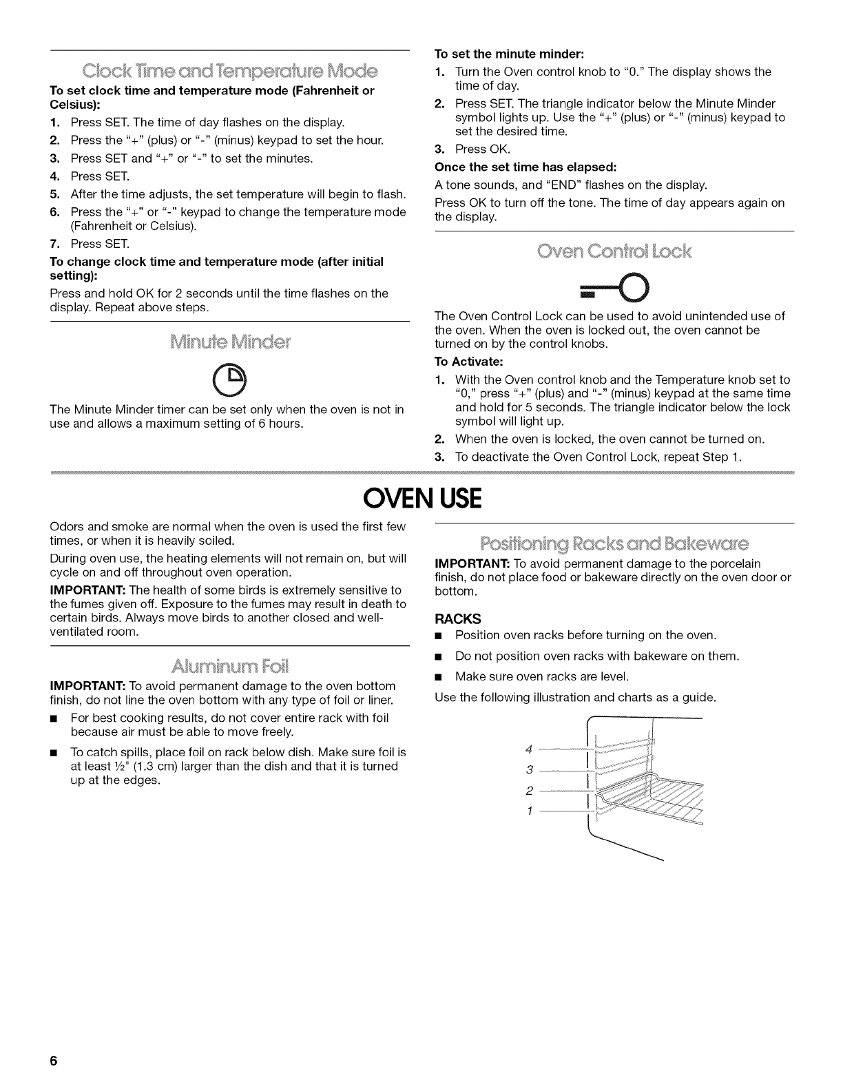 Positioning Racks and Bakeware ................................................ 6